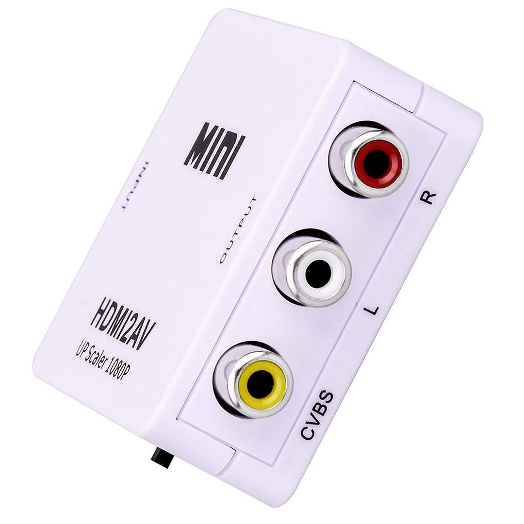 The Mini HDMI to RCA/AV Converter converts HDMI video/audio signal to AV(CVBS) composite video signal and the FL/FR stereo audio signals, supporting DVI system sideline signals. It helps users to convert high quality of HDMI video signal into normal CVBS signal(standard-definition 480i,576i), used on devices such as TV, VHS VCR, DVD recorders,etc, supporting two formats of NTSC and PAL.