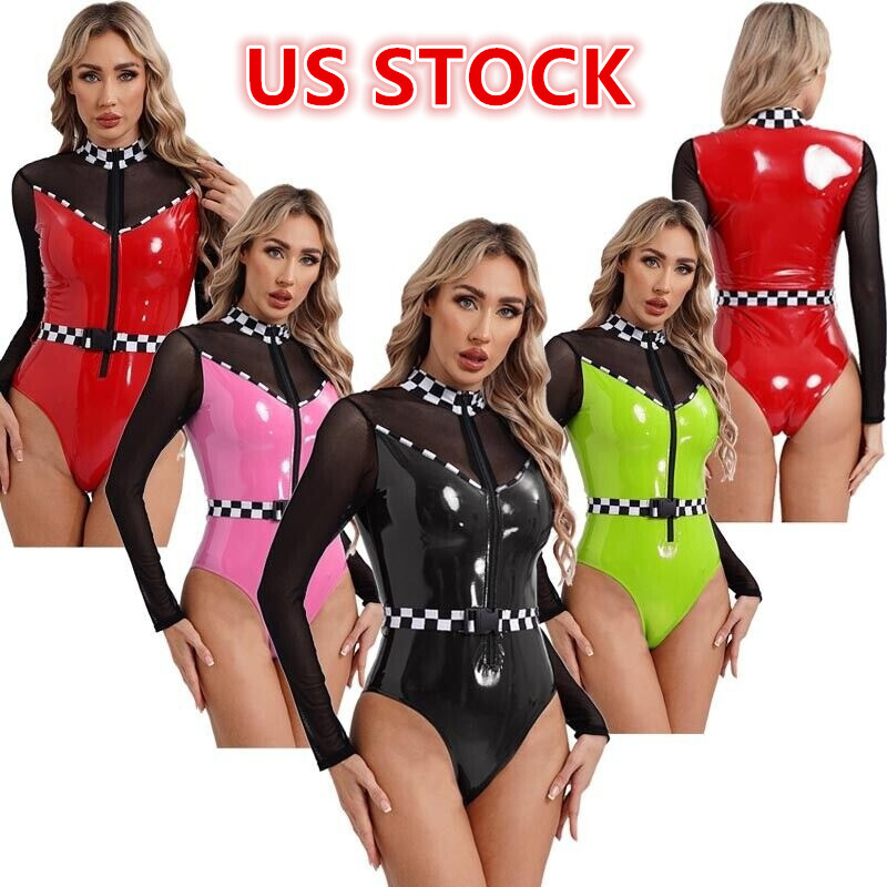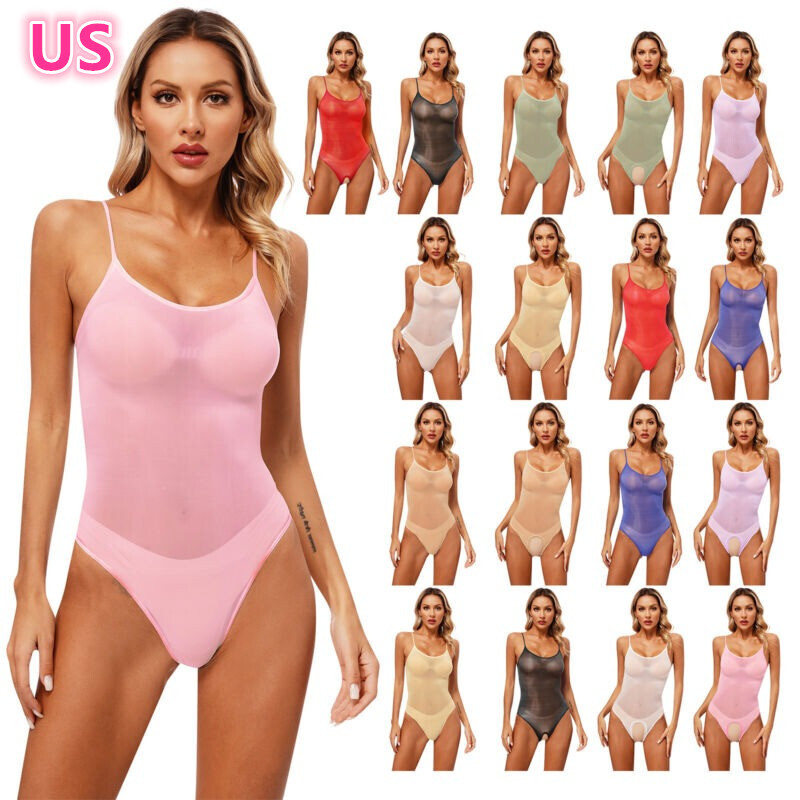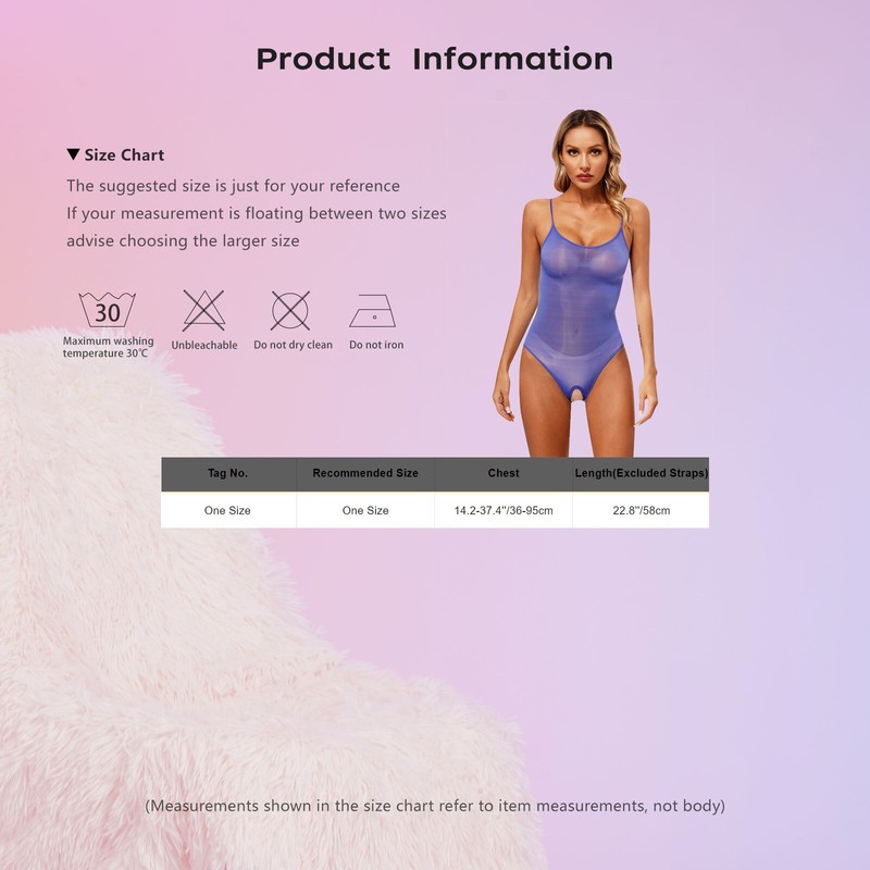 See-through lingerie bodysuit adds mystery sense to your hourglass figure, and brings glossy look because of the oil-shiny fabric.