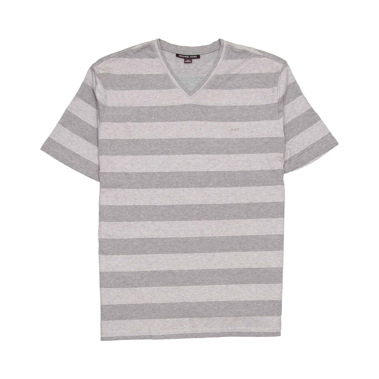 Michael Kors Mens Wide Striped Cotton V-Neck T-Shirt (XLarge, Grey) $90