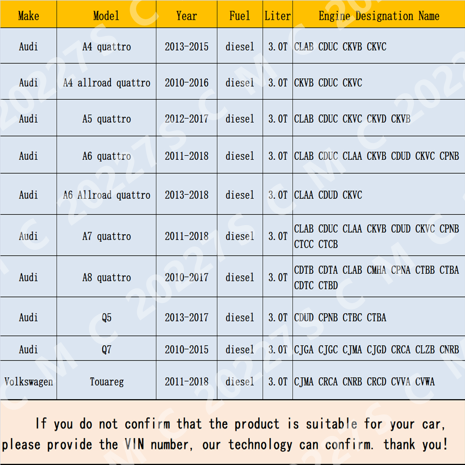 If you are not sure whether the part is suitable for your car, please send us the VIN number of the 17 digit vehicle,