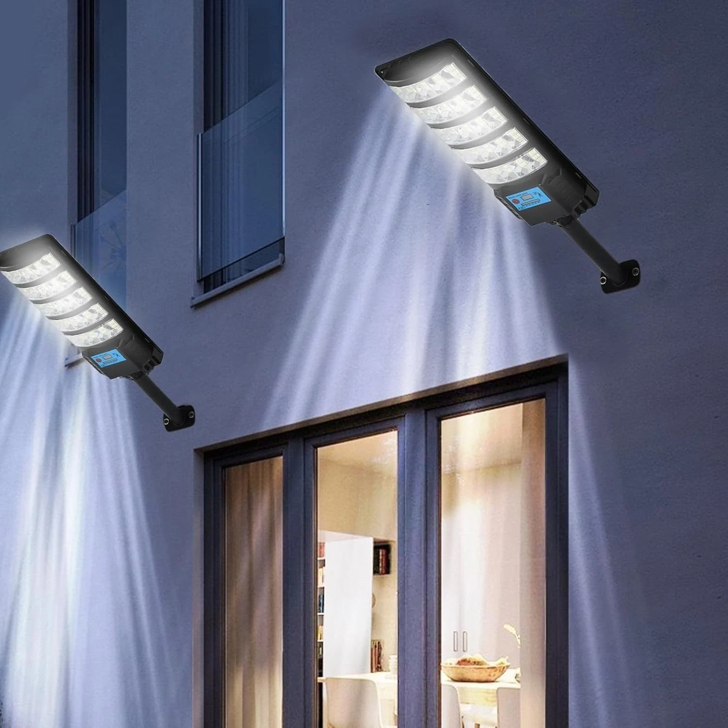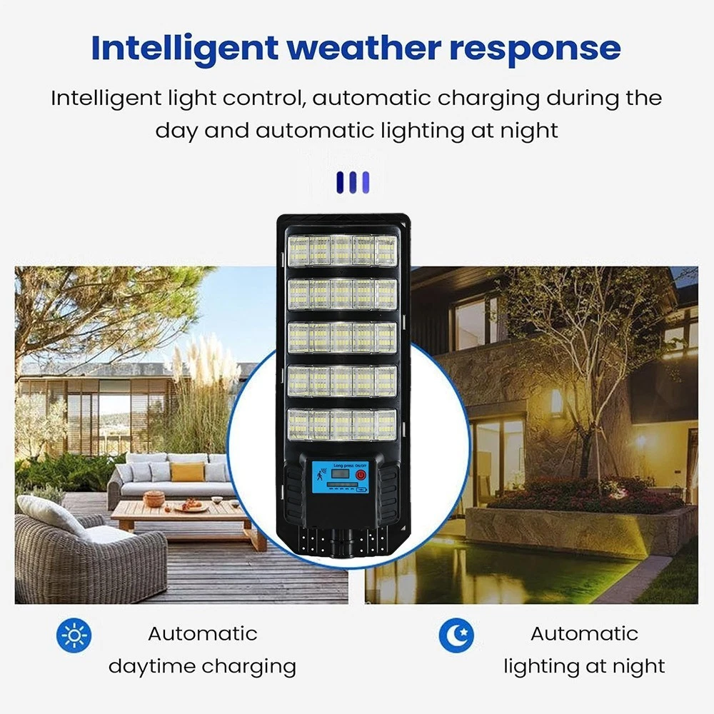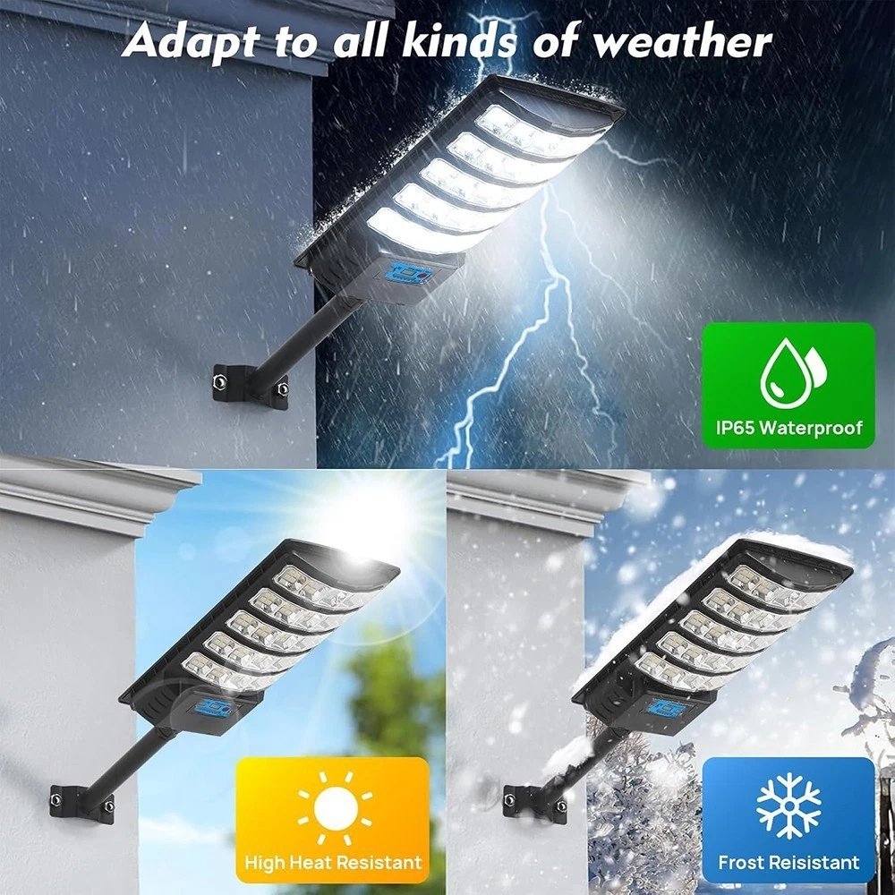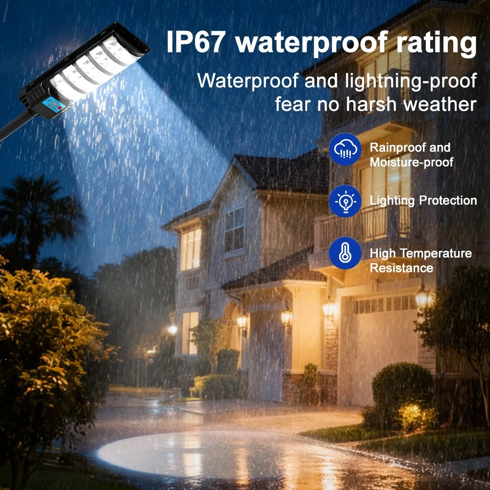 Dual Motion Sensor Modes & Dusk-to-Dawn Auto On/Off: The outdoor solar street light comes with a motion sensing device and supports two practical modes. Mode 1: When someone passes by or a moving object is detected, the light automatically switches from low light to high light. Mode 2: When motion is detected, it automatically switches from dark mode to high light. It also features dusk-to-dawn functionality—turning on automatically at dusk and off at dawn, no manual control needed.