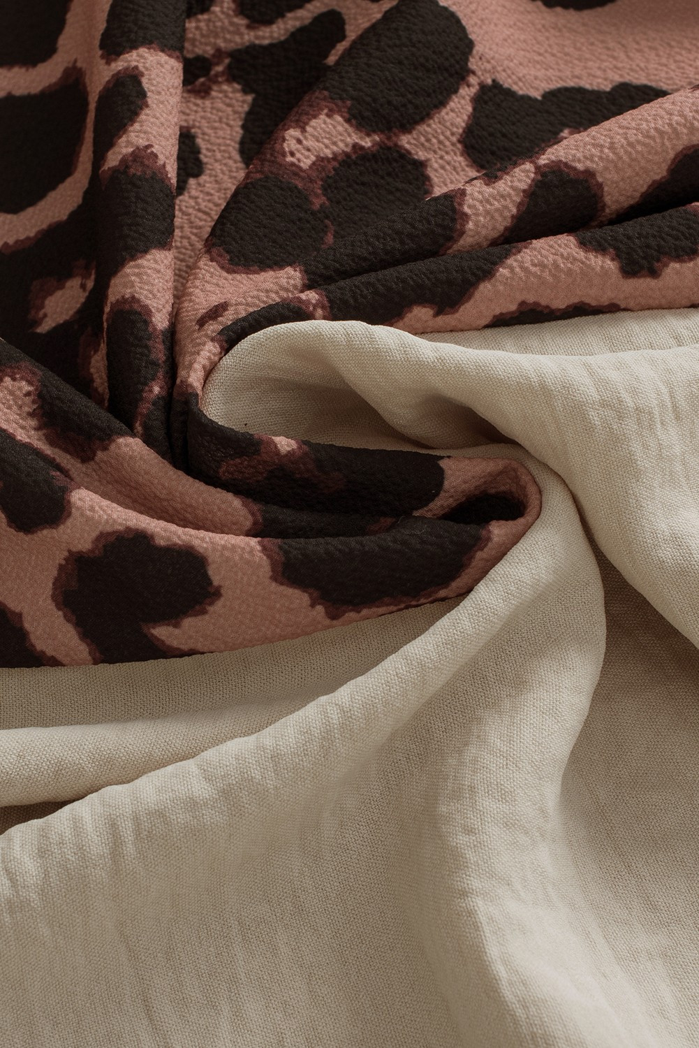 ✦ Khaki base with leopard print and contrast patchwork for a unique style