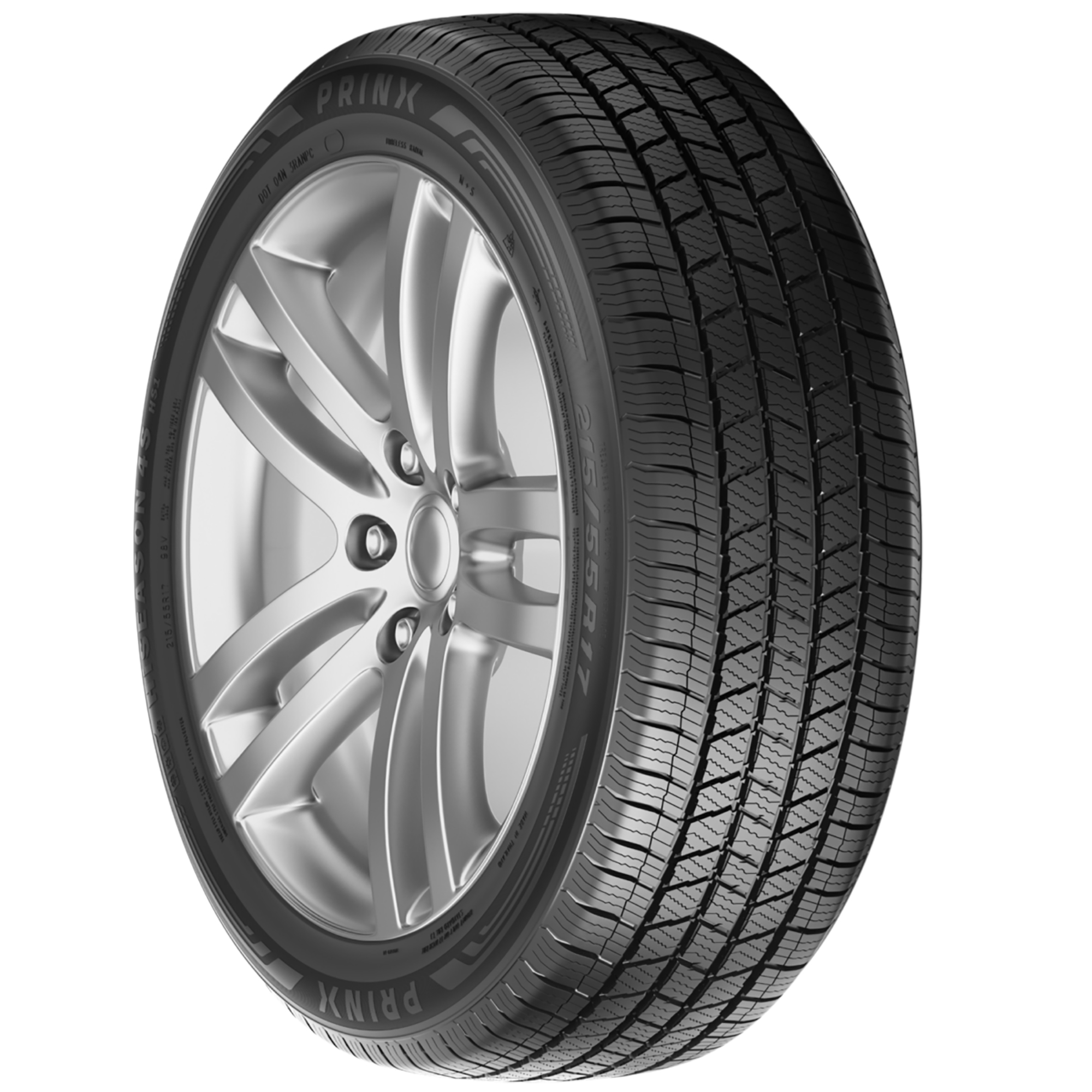 The Prinx HiSeason 4S HS1 is a touring tire designed for crossovers and SUVs. It provides all-weather traction with its circumferential groove design, dense siping pattern, and "snow plow" tread features. The specialized tread compound and unique ladder-shaped blocks enable the tire to earn the 3 Peak Mountain Snowflake rating for severe winter service. Additionally, the HiSeason 4S HS1 comes with a 70,000 mile limited manufacturer's tread life warranty.