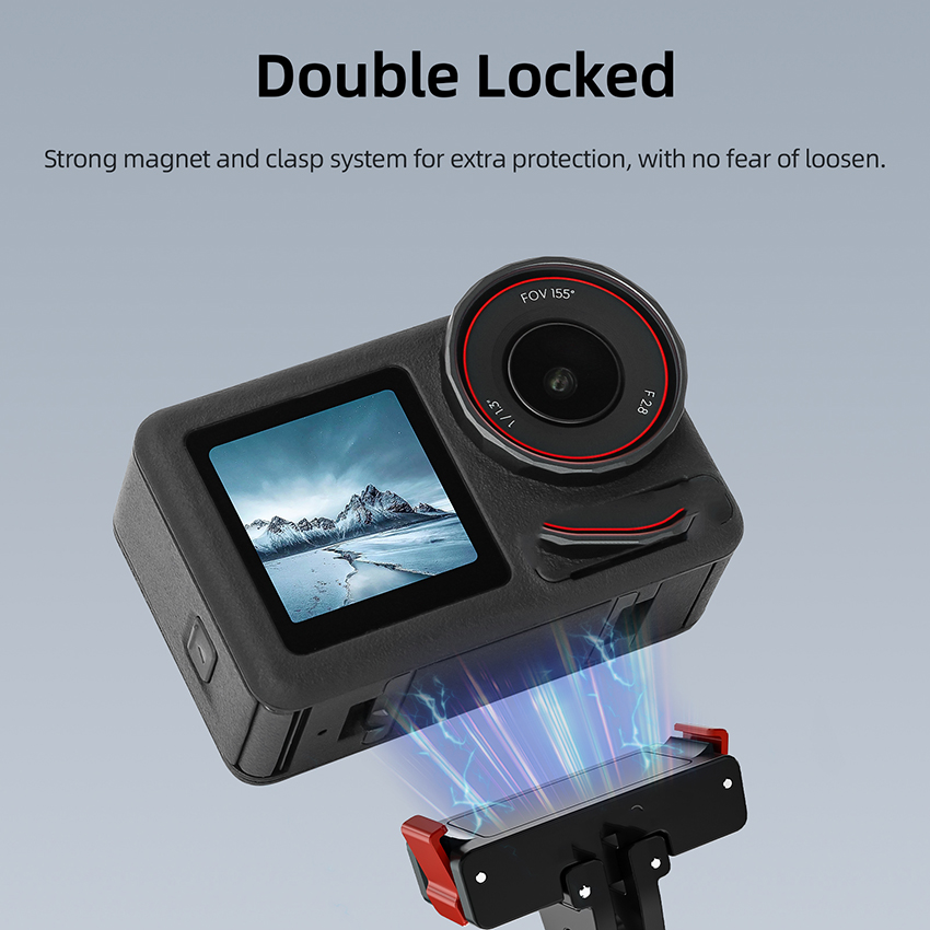 l Magnetic suction plus claw buckle, doubling the stability. Super strong magnetic suction, with aluminum alloy claw buckle, sports shooting without fear of upside down