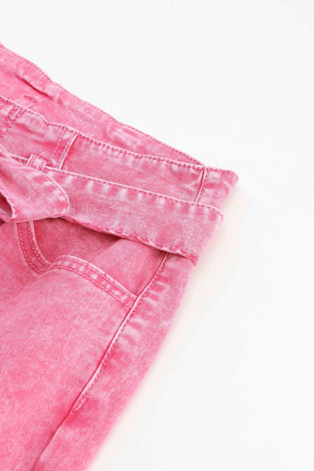 Introducing our Pink Wash Front Knot Flare Jeans, where comfort meets contemporary style. Crafted from soft denim, these jeans offer a flattering high waist and trendy flare leg silhouette, perfect for making a statement with every step.