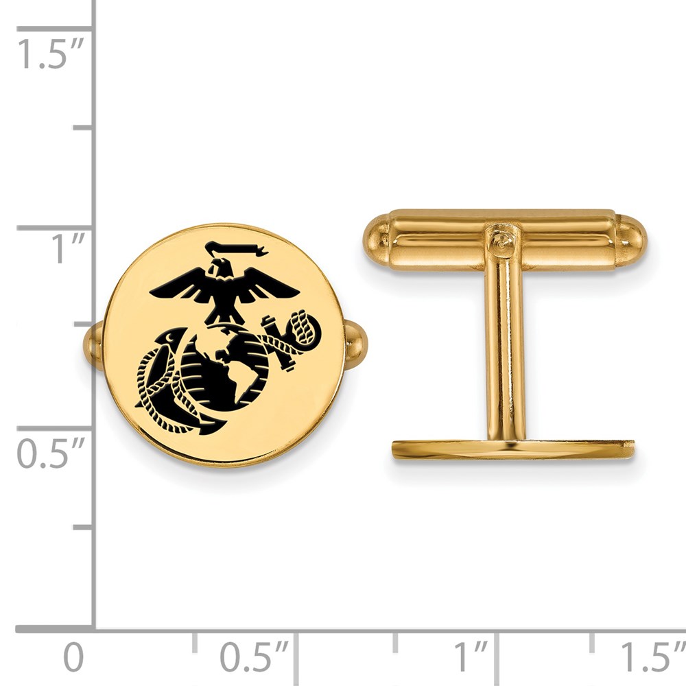 SS 14k Yellow Gold Plated U.S. Marine Corps Epoxy Disc Cuff Links