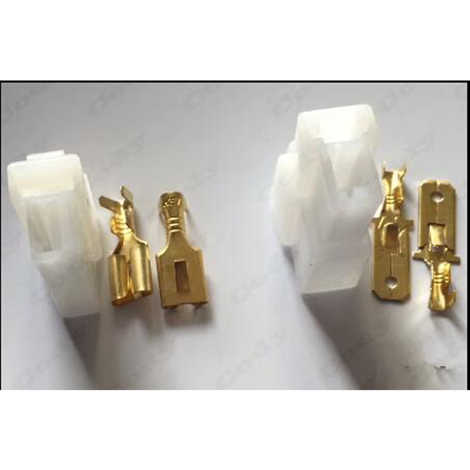 On the left side of the picture, there are two male and female T connectors, each equipped with two pins. The picture shows one male and one female as a set