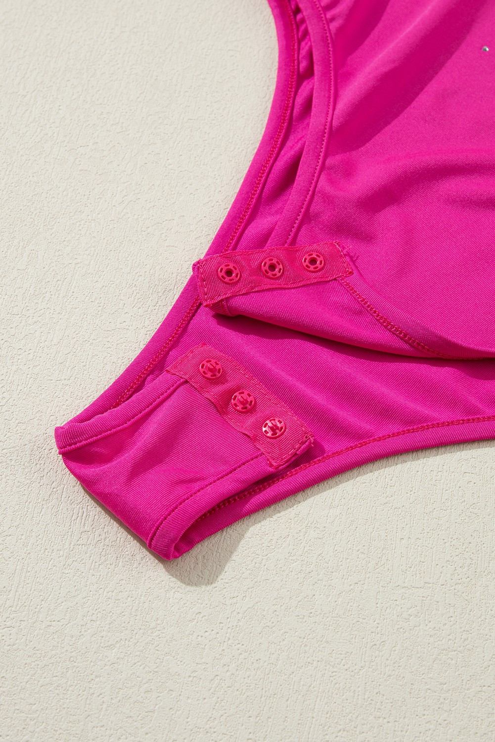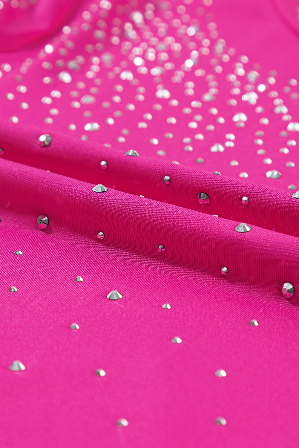 Turn heads with our Bright Pink Rhinestone Mesh Long Sleeves Bodysuit, designed to make you the centre of attention. This bodysuit blends dazzling rhinestones with a bold pink hue, creating a stunning piece that exudes confidence and glamour.