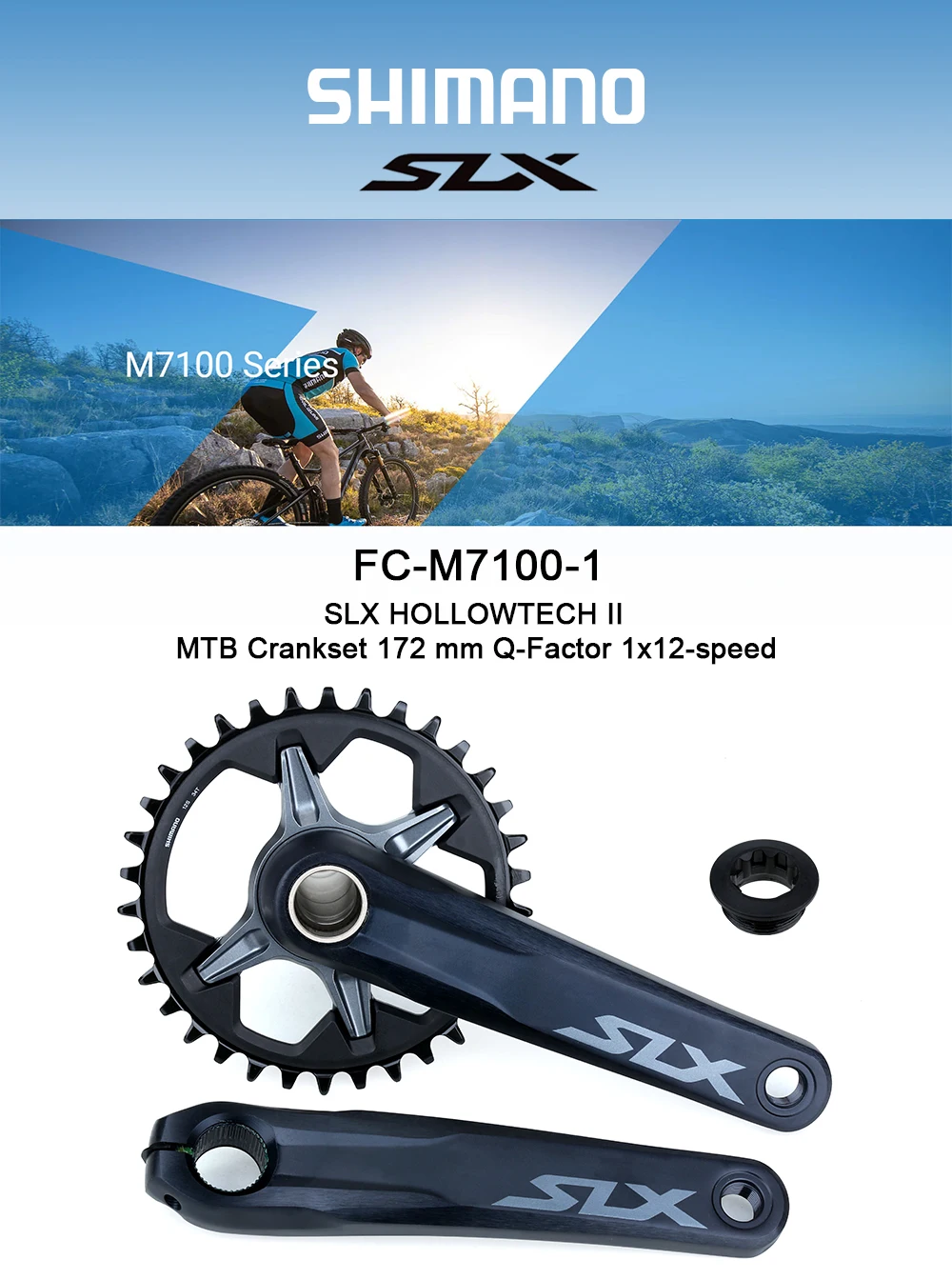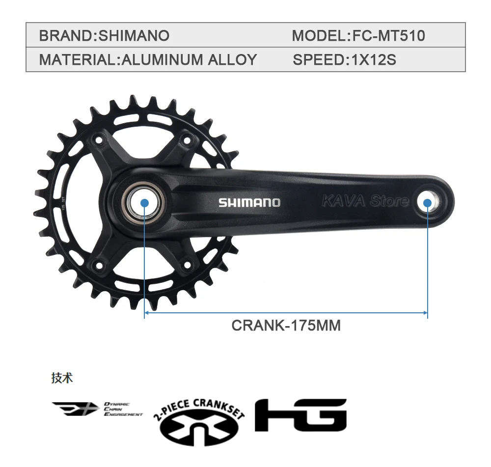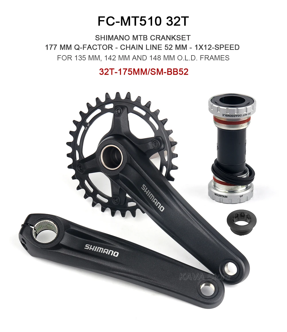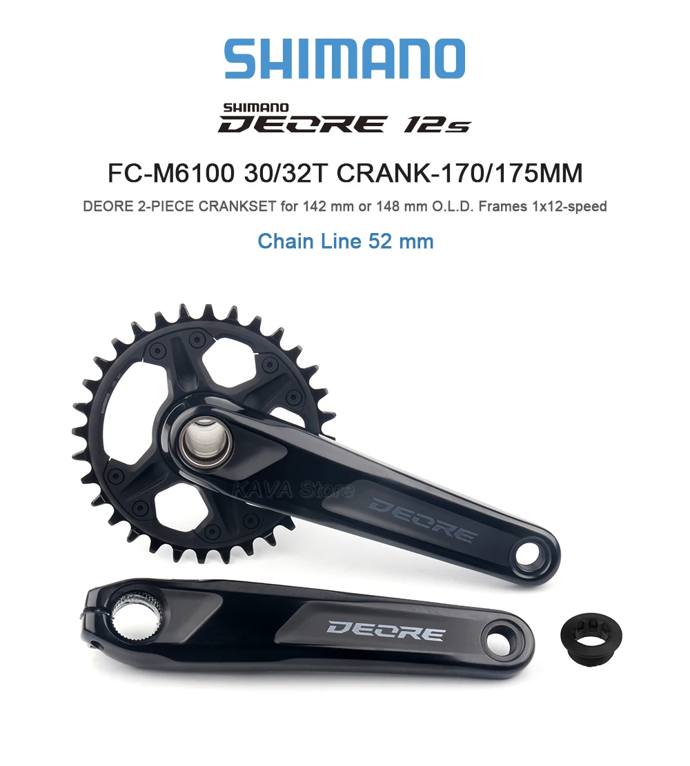 SHIMANO - MTB Crankset - 2-PIECE CRANKSET - 177 mm Q-factor - Chain Line 52 mm - 1x12-speed