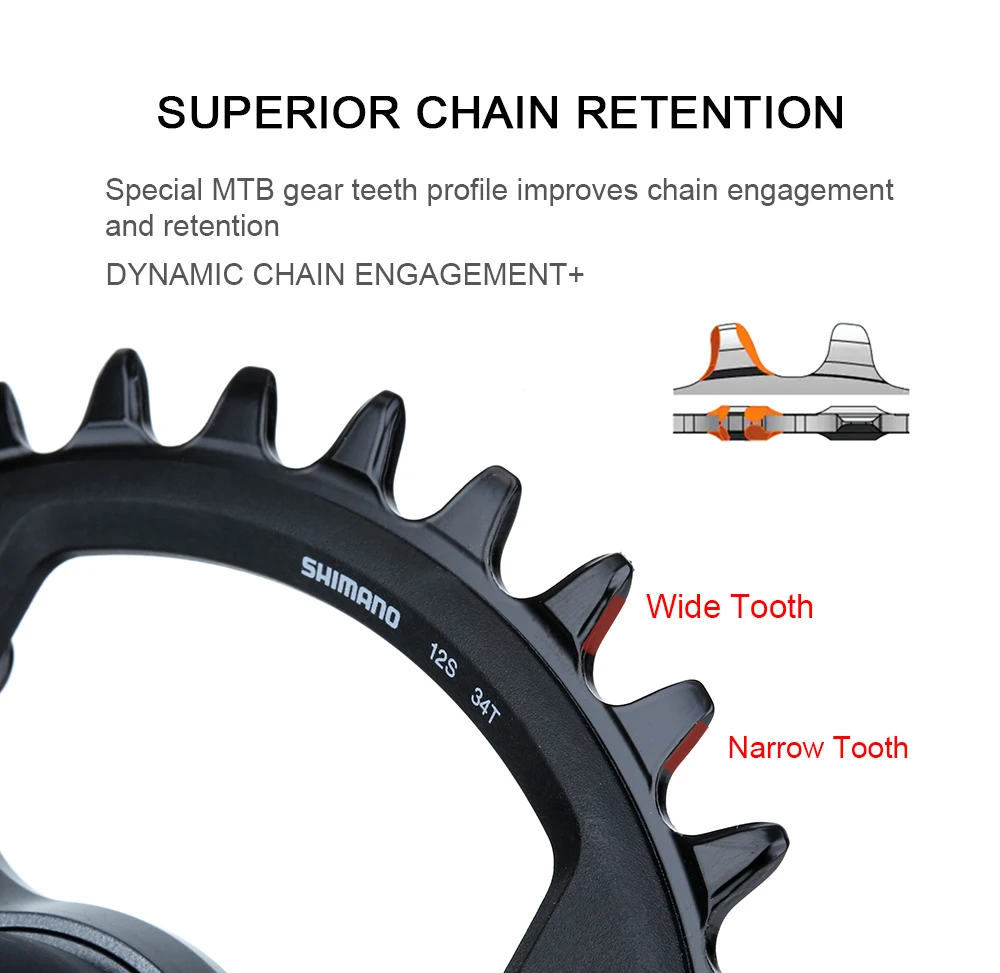 -Special MTB gear teeth profile improves chain engagement and retention,