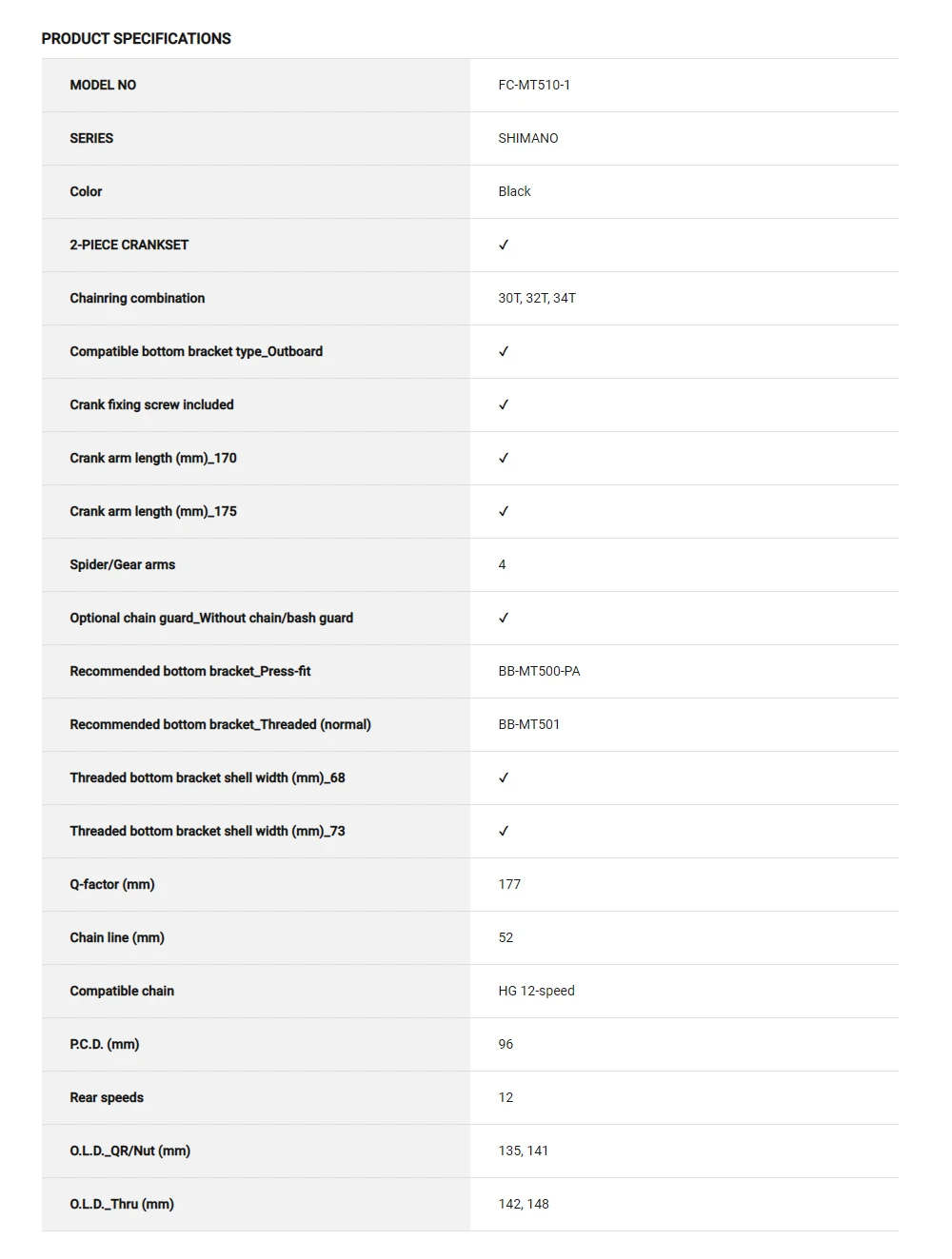 Recommended bottom bracket _ press-in type: BB-MT500-PA
