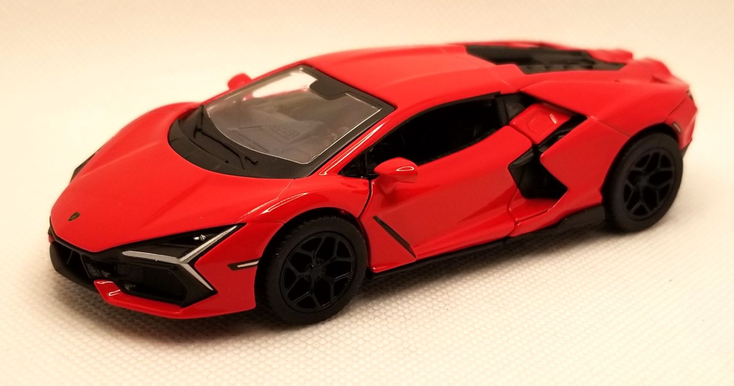 This is a Brand New Kinsmart - 1:38 Scale Model Lamborghini Revuelto Red. The model is about 5 inches long. This model comes with pull back & go and opening doors features. These models come in a big display box and they don't have individual boxes. They will be expertly packed and shipped.