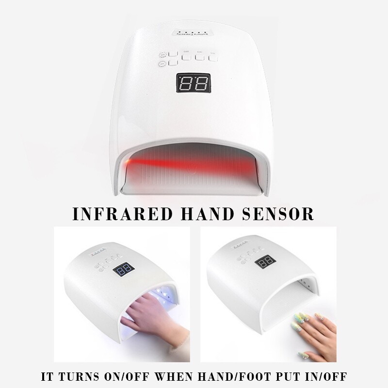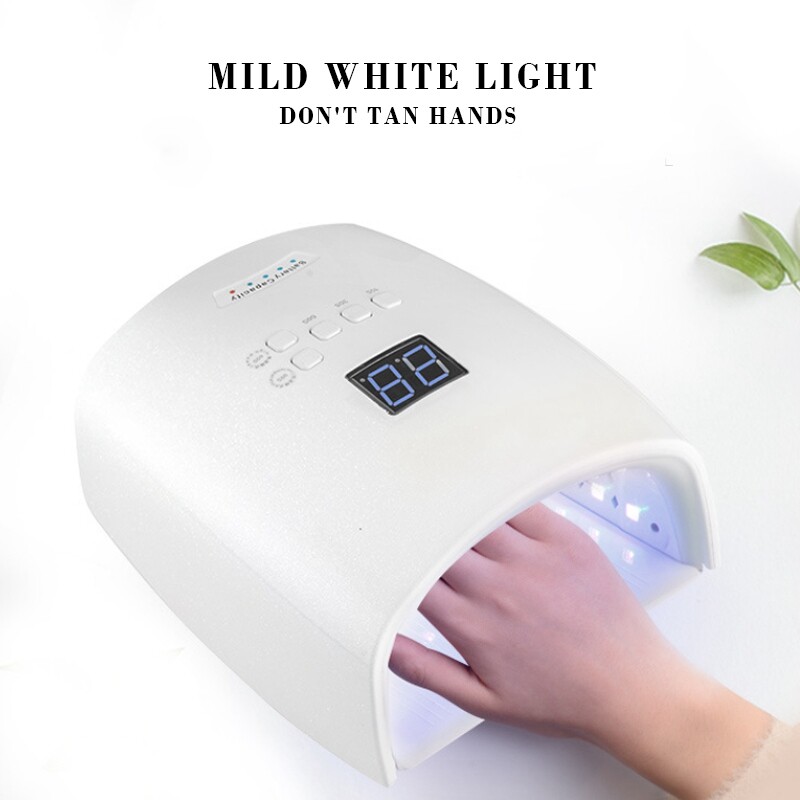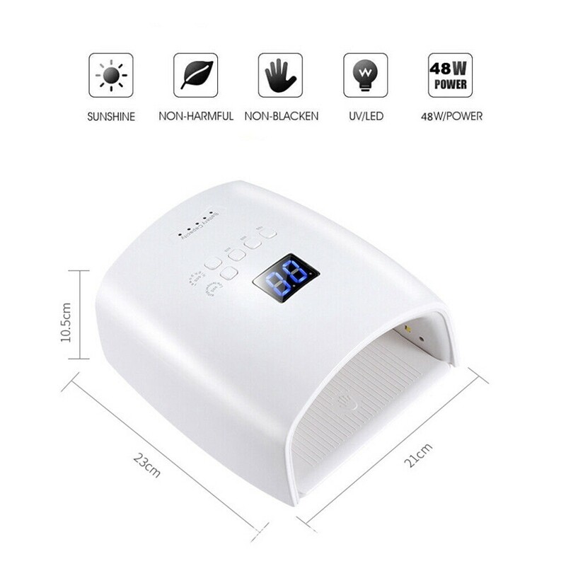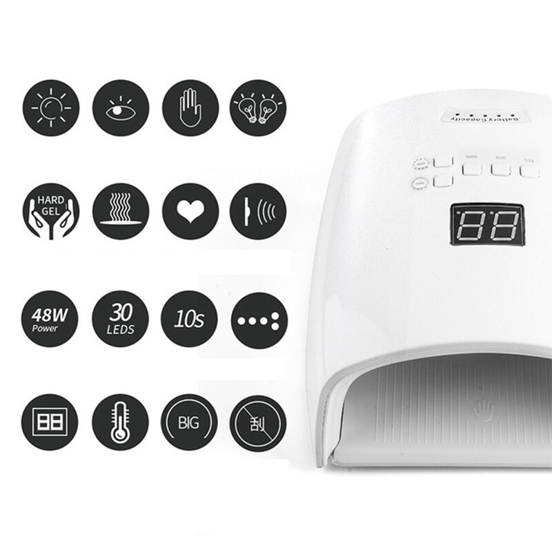 This 48W wireless nail lamp built-in rechargeable lithium battery 78000mAH battery, very convenient to use, great for outdoor use. Curing more faster, with smart automatic infrared sensor & time touch button control, LCD display screen for service time left and power state showing.