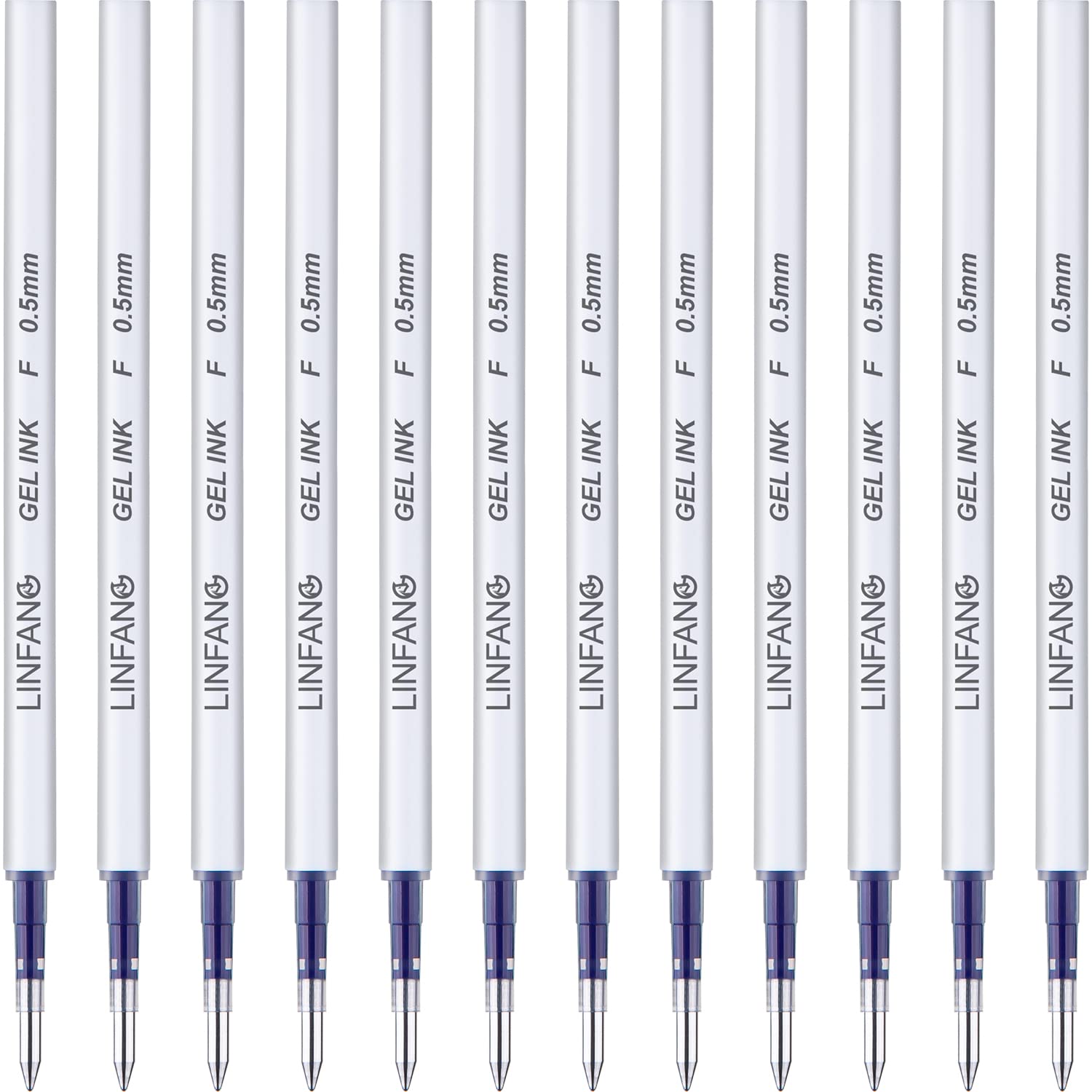 Product Specifications: Package Includes: 12 pcs gel ink refills Ink Color: Blue ink Line Point: Fine point 0.5mm Length: 4 21/64" ( 110mm ) Diameter: 13/64" ( 5mm ) Weigh: 3/32 oz ( 2g ) Note: Please completely remove the wax ball on the pen tip before first writing.