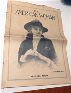 For sale is a vintage October 1915 issue of The American Woman Magazine, published in Augusta, Maine. This magazine is a fascinating piece of history, offering a glimpse into early 20th-century American life, fashion, and homemaking. The issue is in good condition considering its age, but it has some wear: it was folded in half at some point, and the first couple of pages have small tears along the fold lines. Despite this, the overall magazine remains intact, and the content is very readable.