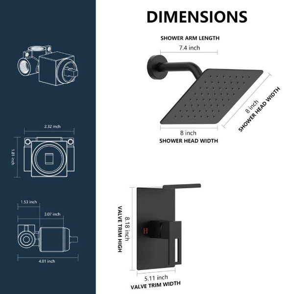 Shower Head, Pressure Valve, Storage Rack, Faucet Handle |