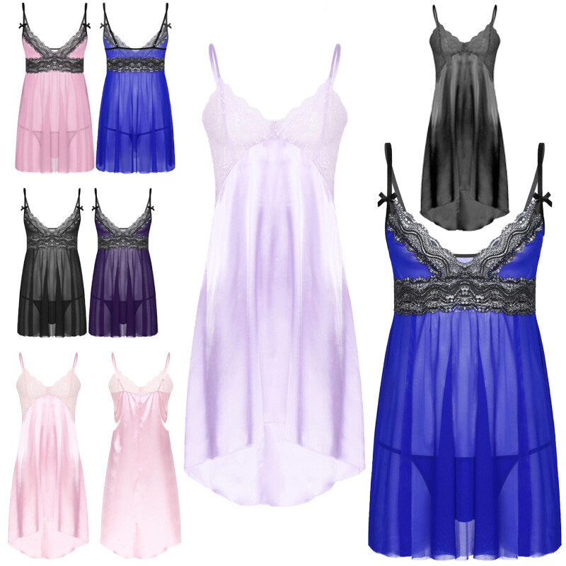Men Sissy Satin Underwear Thong Lace Patchwork Panties G-string Briefs T-back.