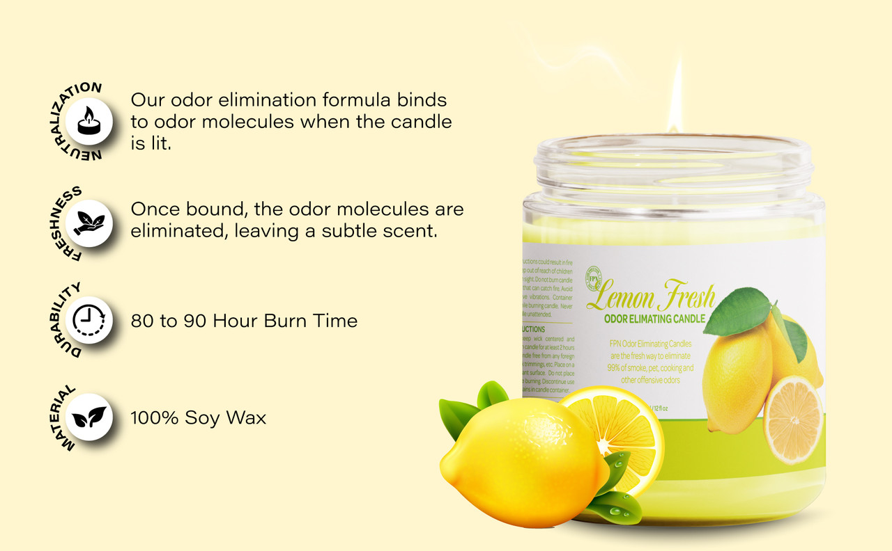Features & Benefits of FPN Lemon Scented Odor Eliminating Candles