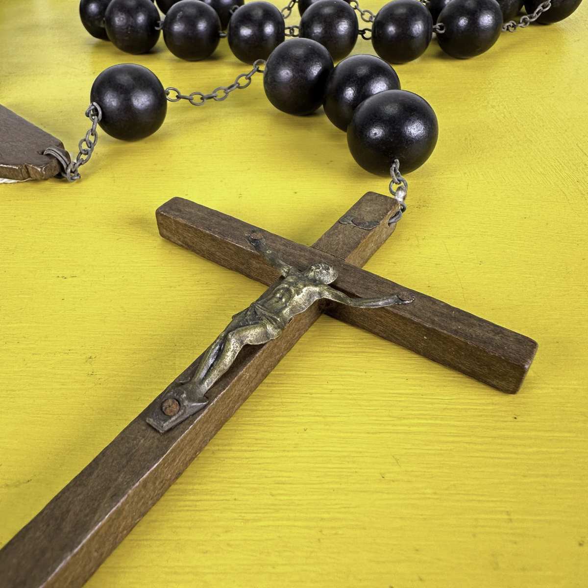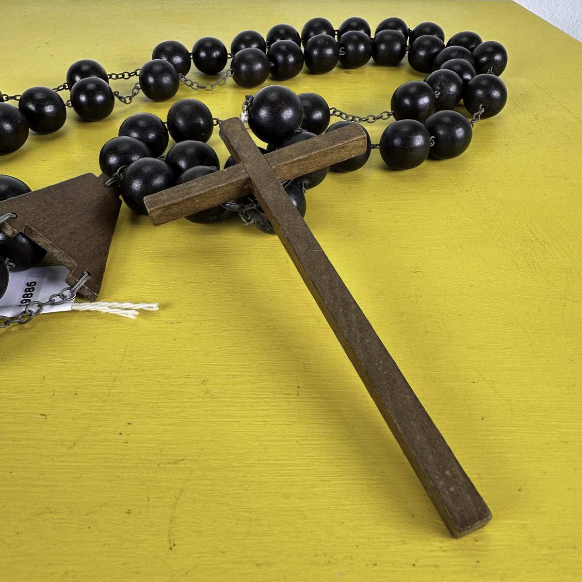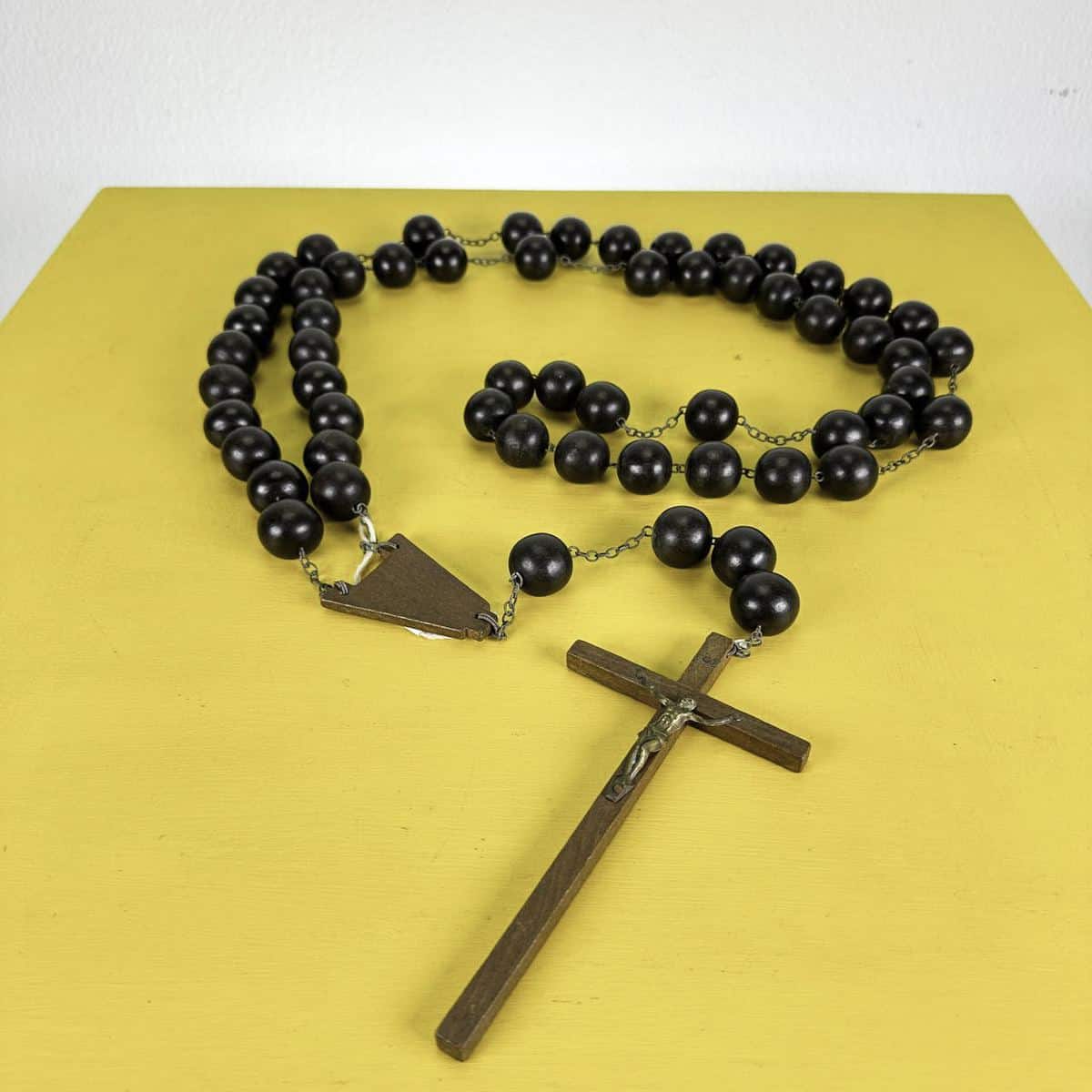 grande rosario vintage in legno decorativo da parete