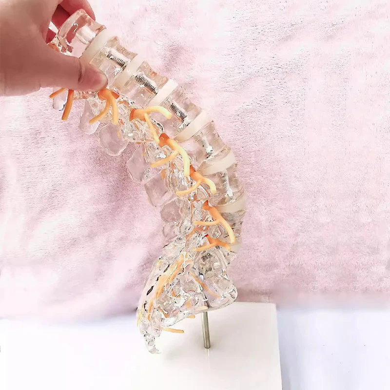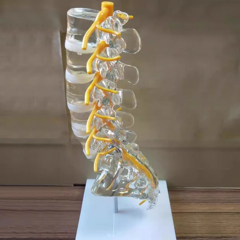 Transparent Lumbar spine model with Tailbone Intervertebral disc Spinal nerve Sacrum Tail vertebra Orthopedic 3D teaching