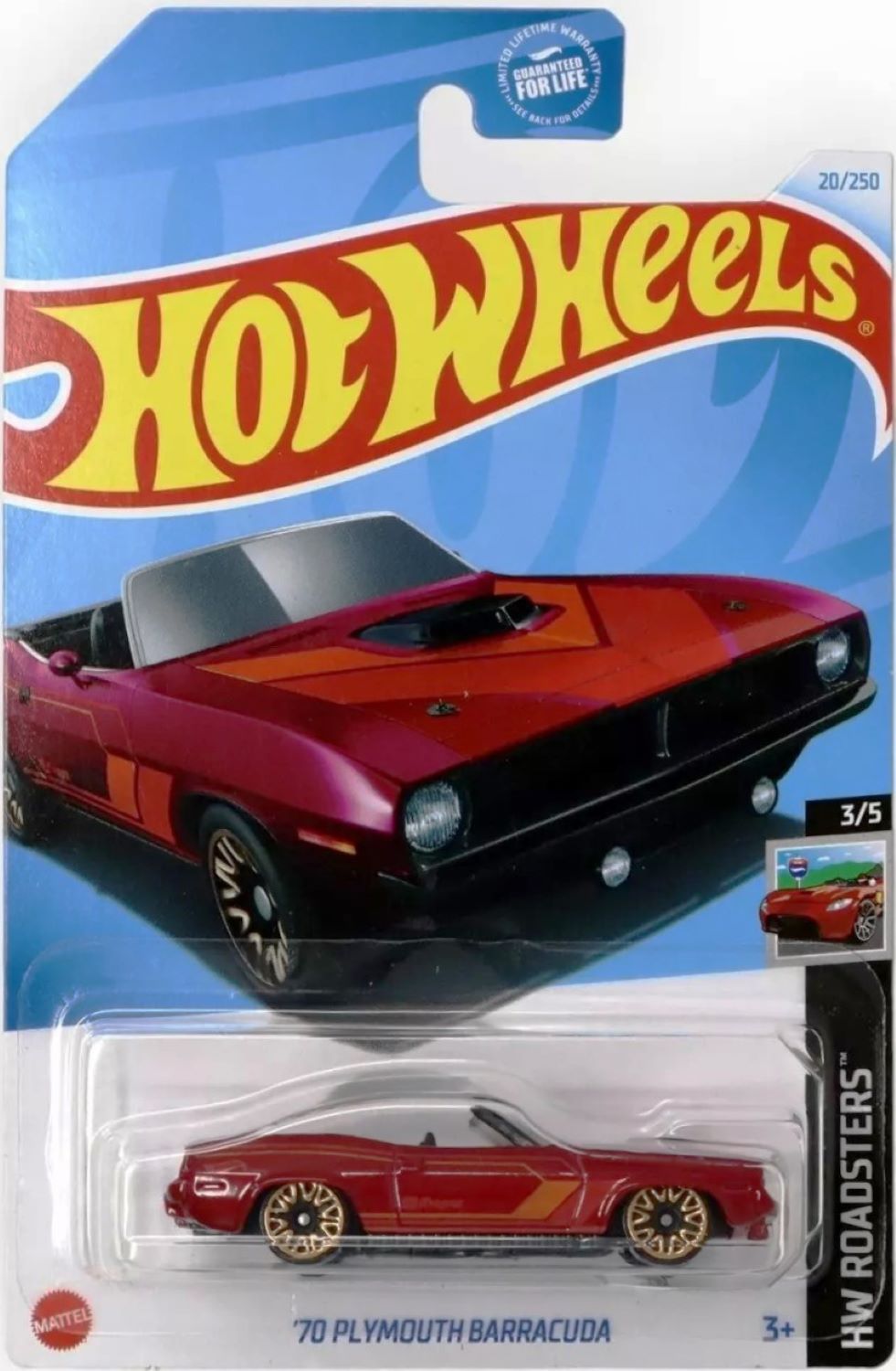 This is a Brand New Hot Wheels - 2024 HW Roadsters 3/5 '70 Plymouth Barracuda 20/250, 1:64 Scale.