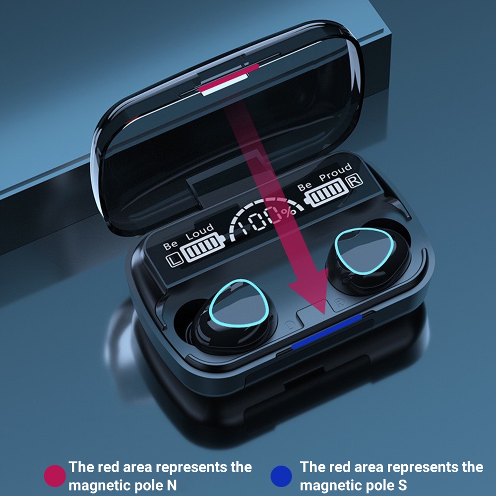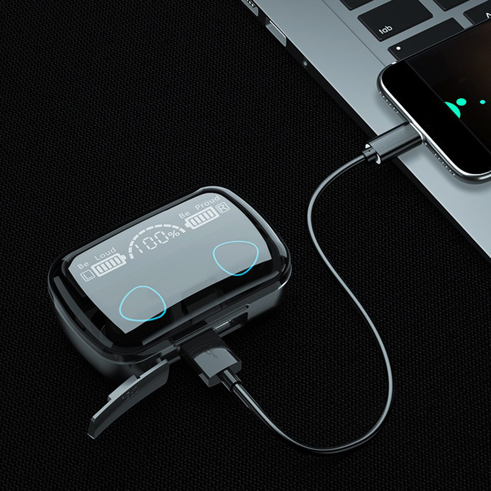 Easy power management, large 1200mAh bluetooth headset charging case for two 50mAh truly wireless headphones The earbud housing has a USB C&A port so that it not only provides battery life for the headset, but also serves as a portable charger to power up your phone or other electronic devices in an emergency. Keeps you away from the anxiety of having your phone shut down due to running out of power.
