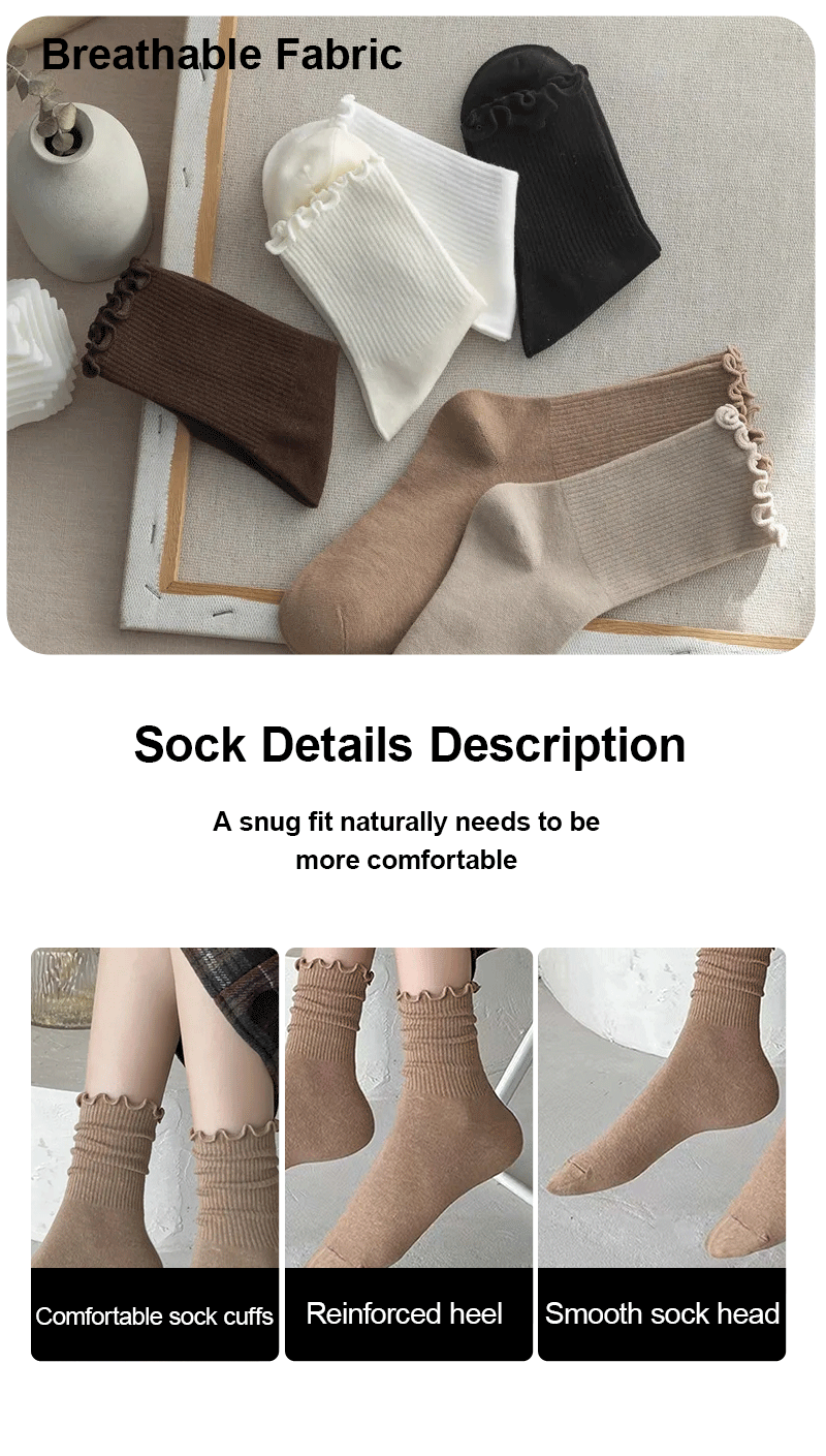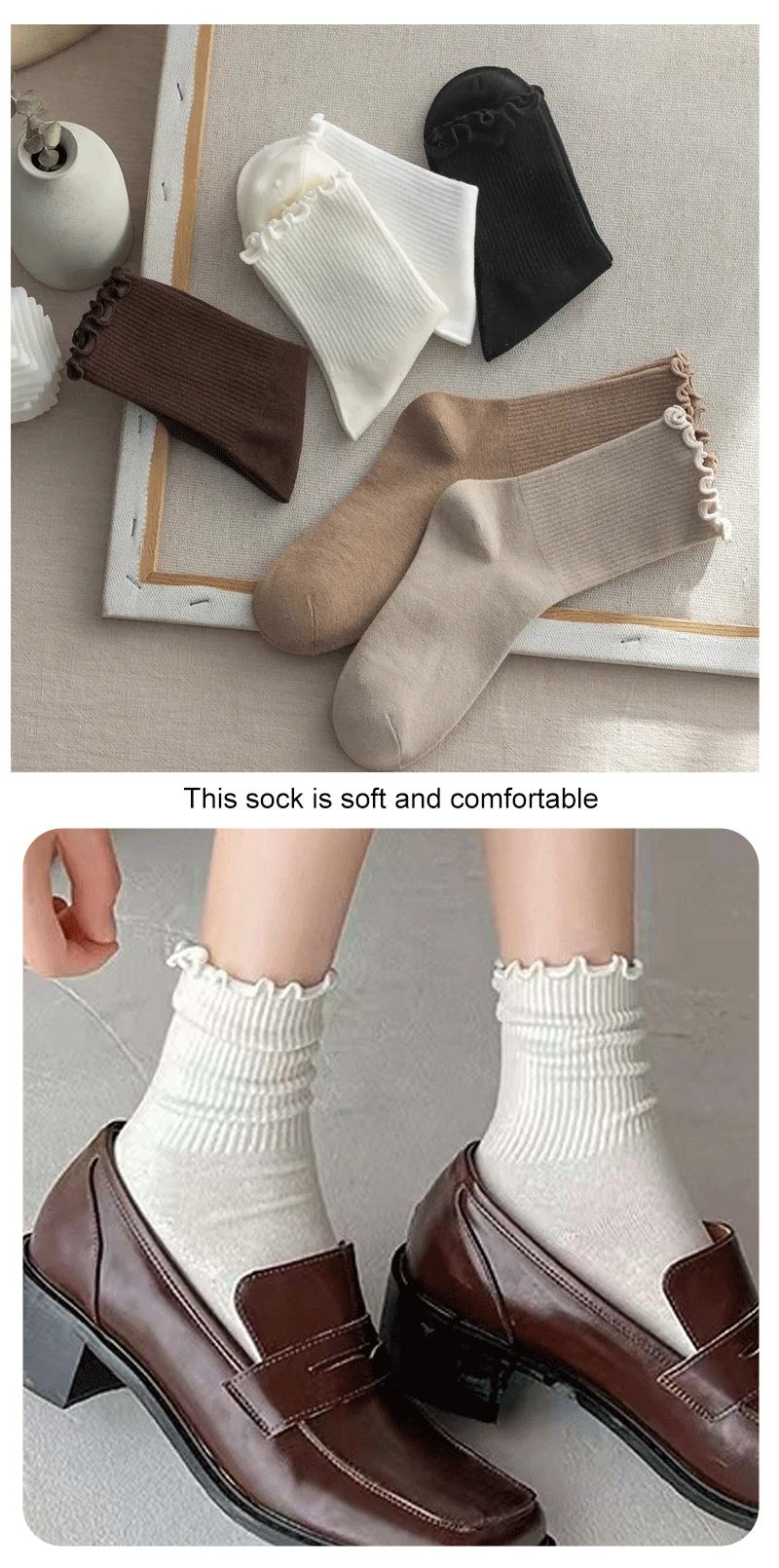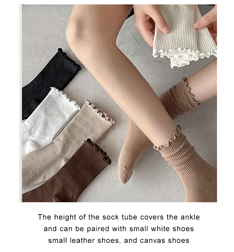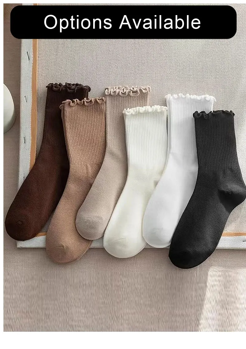6 Pairs Ruffled Mid Length Socks Formal Cosplay Fashion Foot Wear Gift Idea NEW