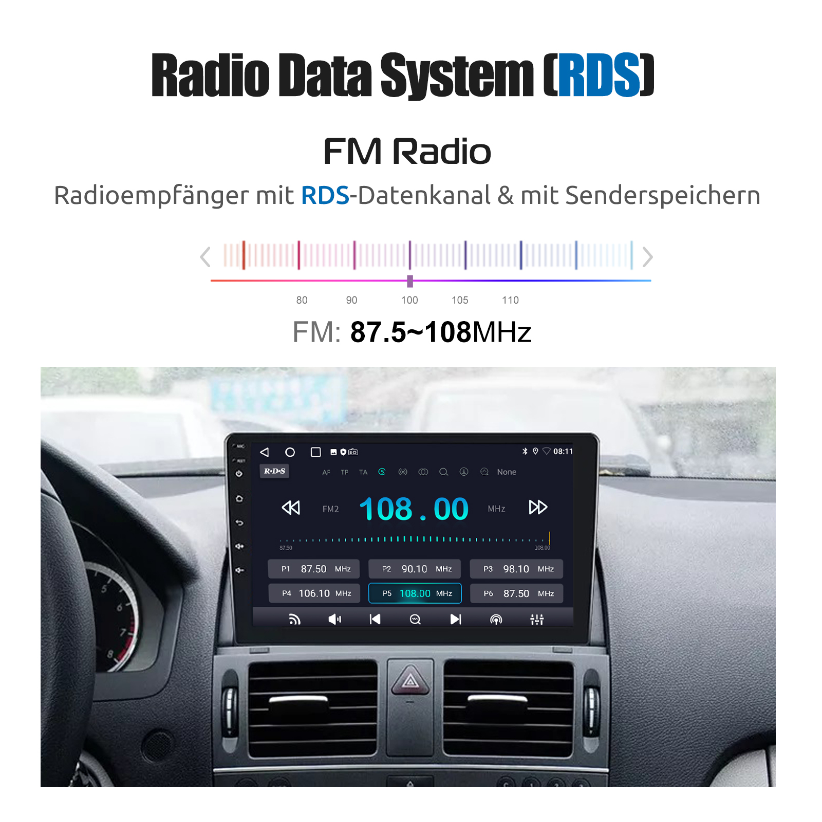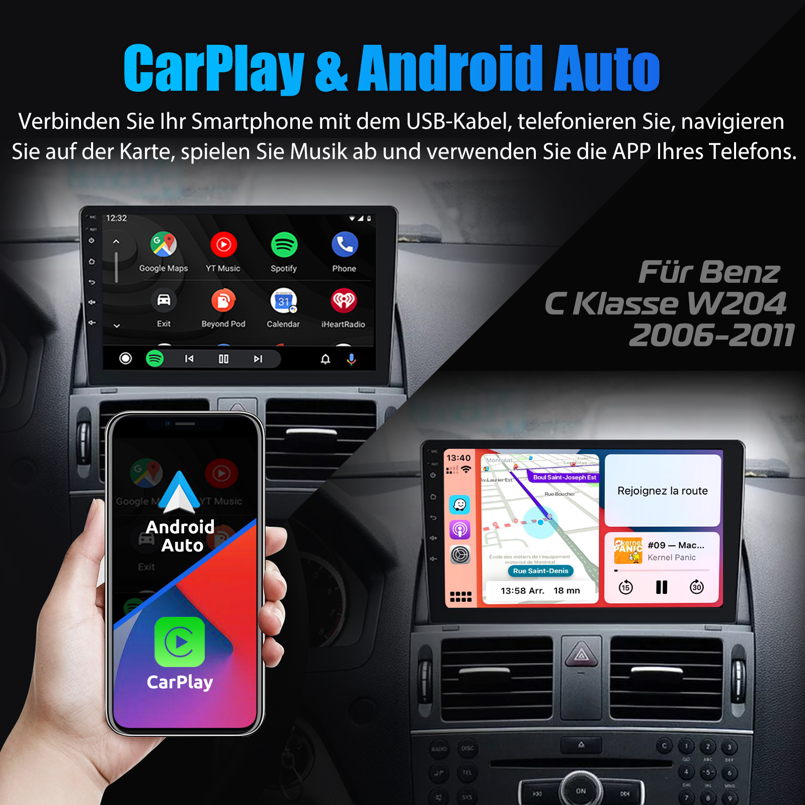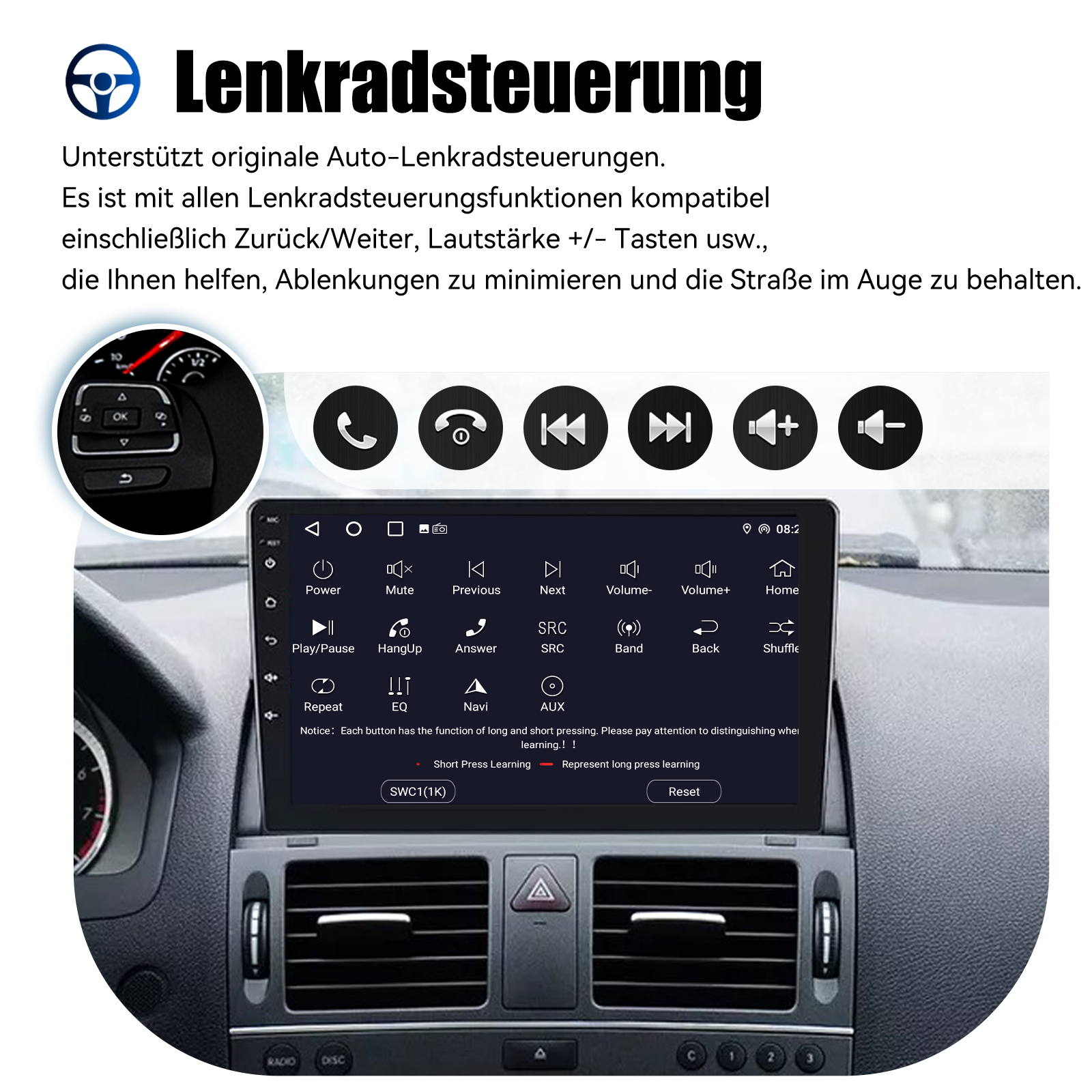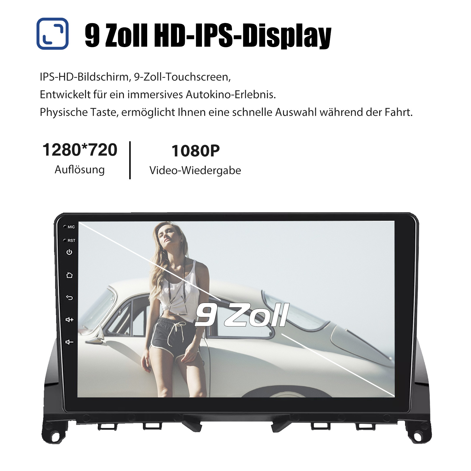 9 Zoll Android 15 Autoradio Für Mercedes Benz C-Class W204: Das Android Autoradio mit 9" 1280* 720 HD IPS kapazitivem Touchscreen, 4GB RAM und 64GB ROM ermöglicht das Herunterladen Ihrer Lieblings-Apps und -Videos, damit das Autofahren nicht mehr langweilig wird. Kein zusätzlicher Rahmen, kein Kabelwechsel, Plug and Play.