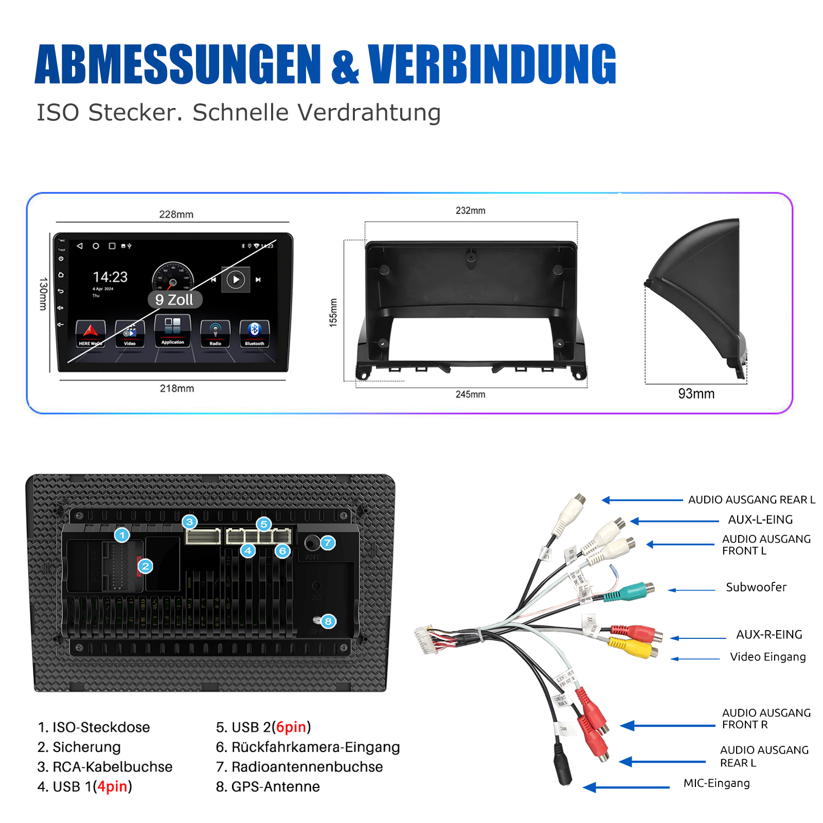 RDS/FM-Radio und Bluetooth und ASP Sound: Unterstützt Bluetooth 4.1, mit integriertem Mikrofon, damit Sie während der Fahrt freihändig telefonieren können. Unterstützt den Zugriff auf das Telefonbuch, die Musikwiedergabeschnittstelle usw. RDS unterstützt. Sie können 18 FM Radiosender speichern. Eingebauter ASP-Chip. Unterstützt 32-Band-EQ-Einstellung, die nach Ihren persönlichen Vorlieben eingestellt werden kann.Der Ihrem Originalsound sehr ähnlich ist.4 x 45W Verstärker, Surround-Sound und Subwoofer-Ausgang.