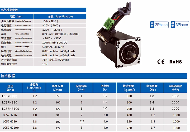 Packing list: 1 pcs3 phase NEMA23 Closed-loop stepper motor(with 0.5m motor cable ) 1 pcs3 phase closed loop stepper motor driver LCDA357H 1 pcs3M Encoder cable(If you need longer cables, please contact with us)