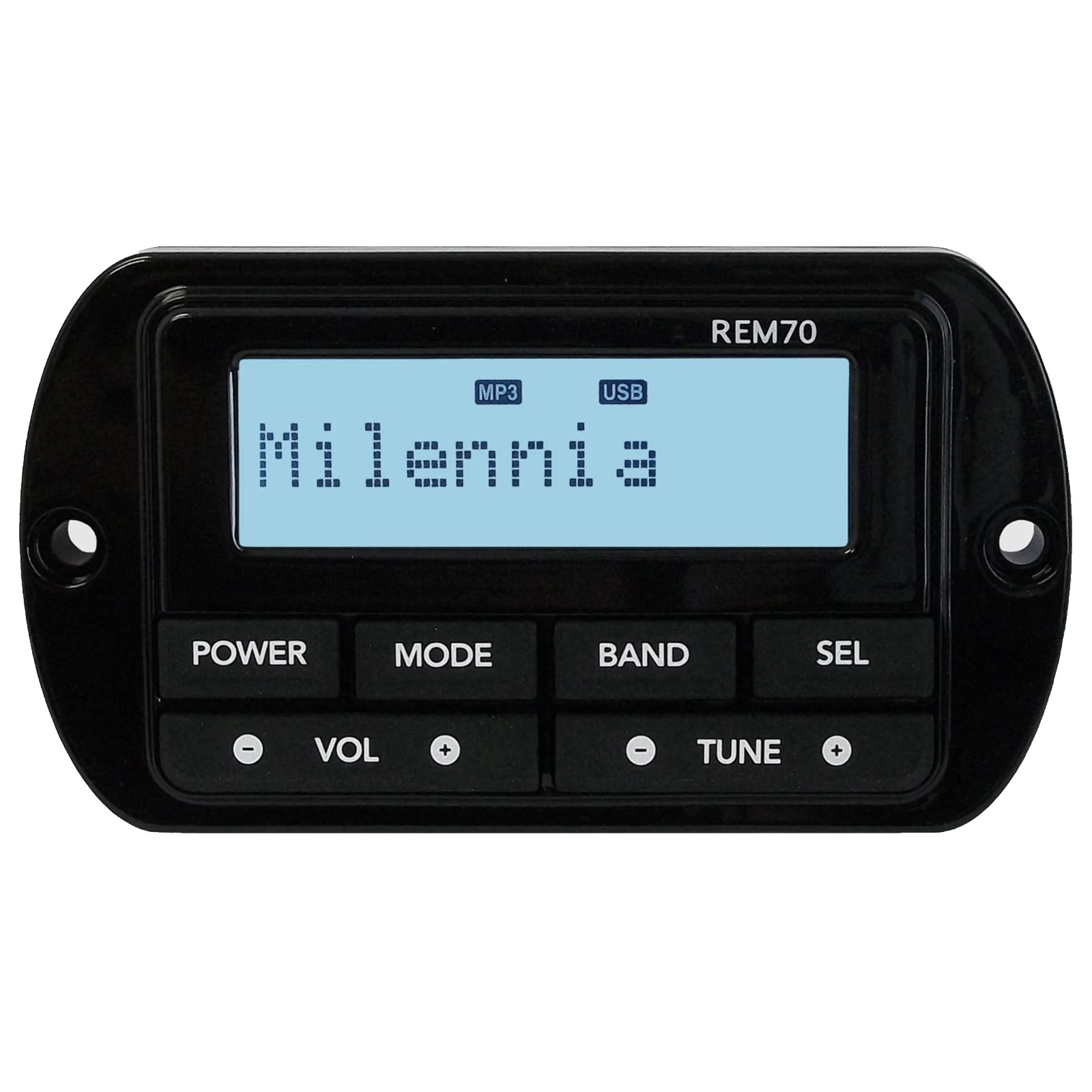 • WIRED REMOTE WITH EXTENSION: The Milennia REM80 Marine Wired Receiver Remote is waterproof featuring a 2-line 2-3/8" LCD display, able to change sources, switch radio bands, and also adjust the volume, bass, treble, fader and balance, track selection, toggle play/pause functions. Provides control of all stereo functions. A 20 foot extension cable for the wired receiver remote is included.