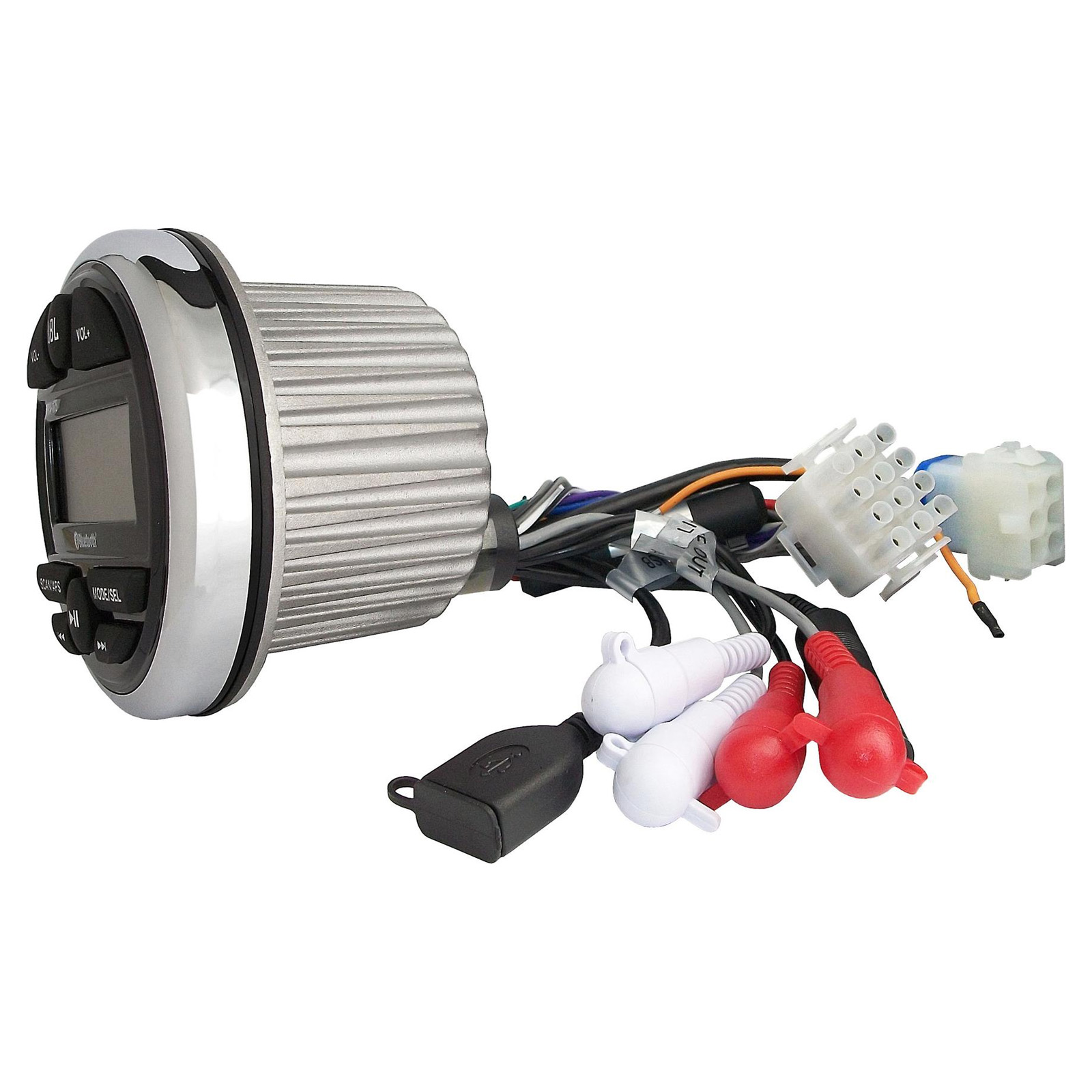 • RECEIVER: JBL PRV175 Bluetooth USB Marine Gauge Style Stereo Receiver is made with a IPX5 marine rated faceplate to protect against any weather condition featuring built in Bluetooth for audio streaming, USB input and AUX inputs, AM/FM tuner.