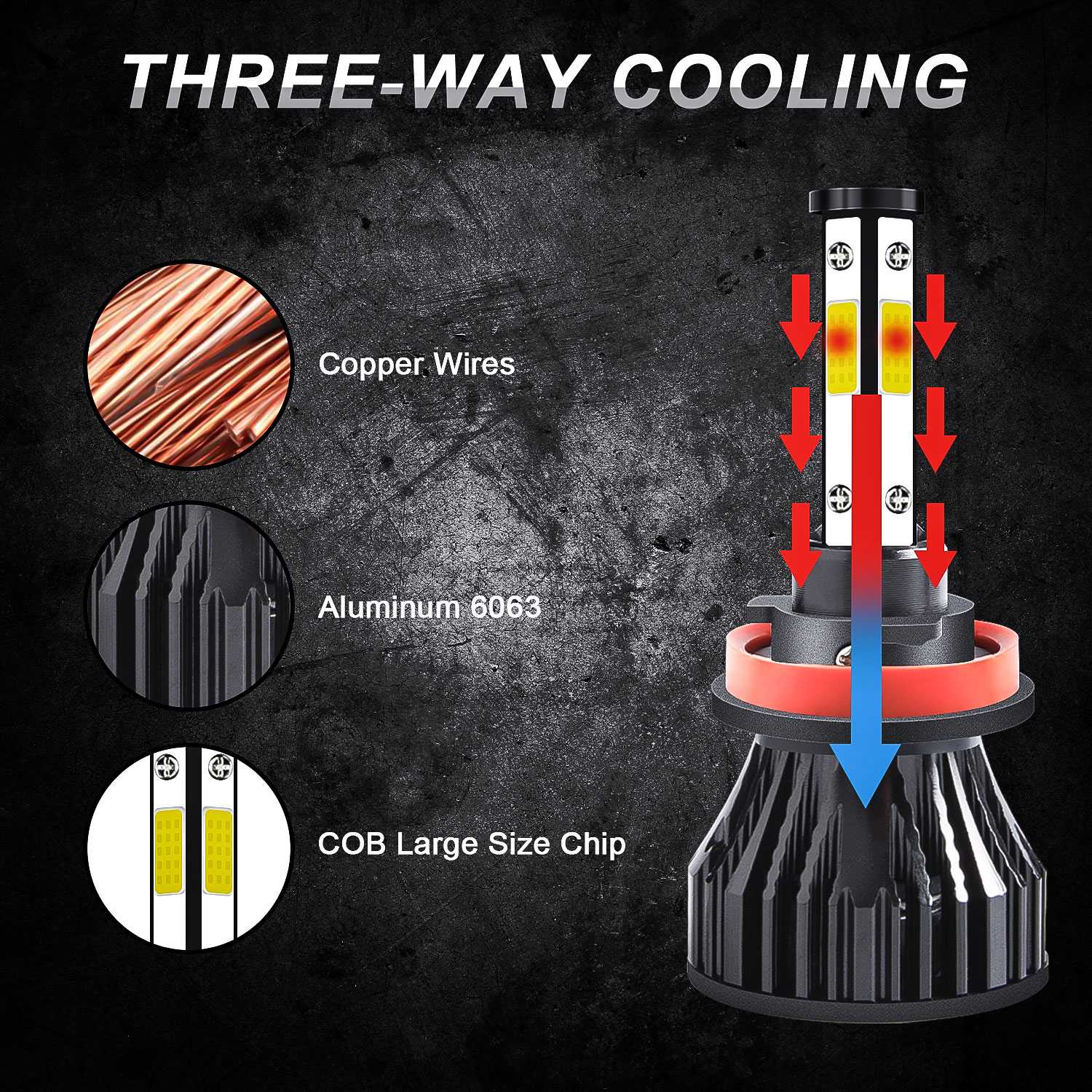 【Longer Lifespan】Adopt whole aviation aluminum body with top LED chips. Unique hollow carved heat sink design and 12000RPM turbo cool fan provide super cooling ability, which ensures a longer lifespan up to 30000 hours. Housing and fan works even in extreme situations,it always keep working and show a clear bright light.