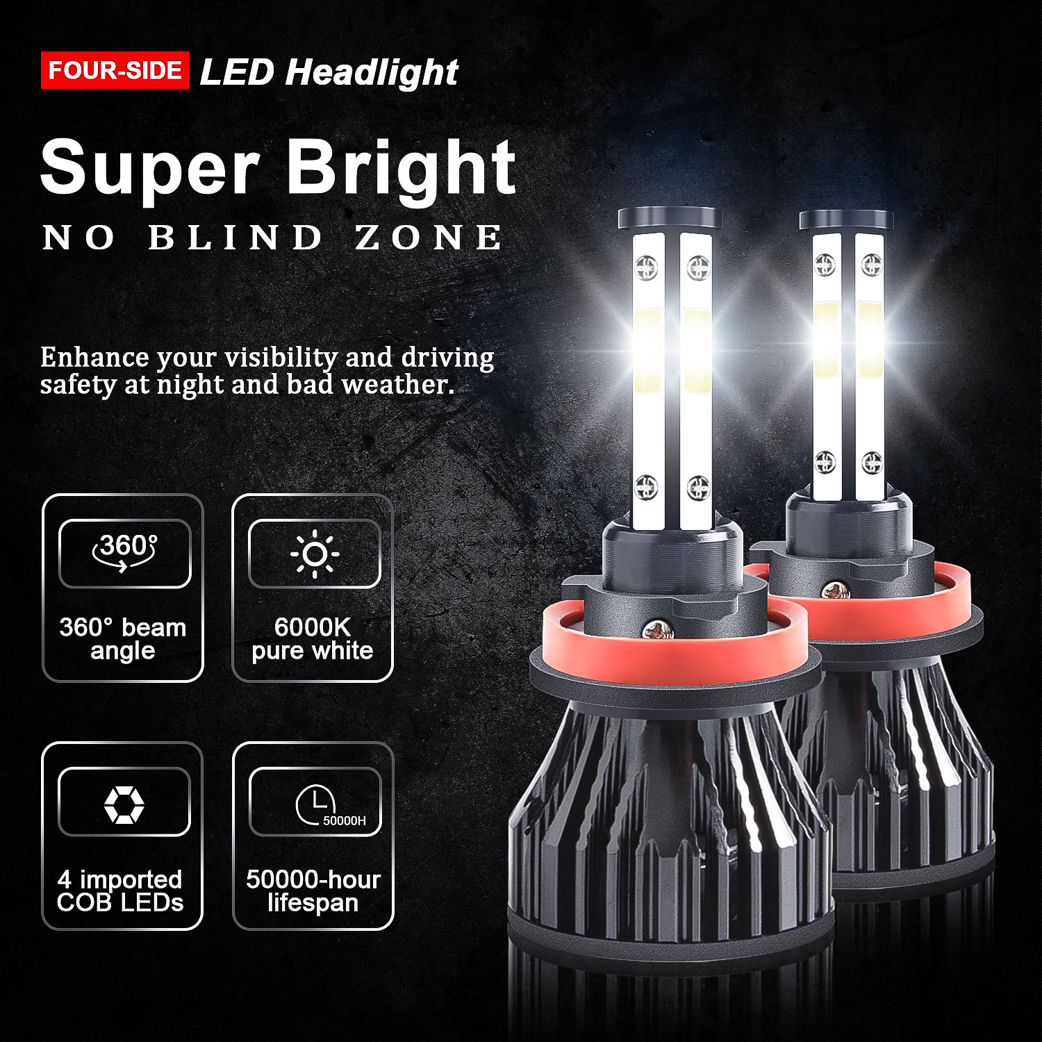 【300% brighter than the original halogen bulbs】Top Automotive-Grade COB LED chips with 72W,7600LM per pair, 6000K cool white. Super focused beam pattern design provides wider and farther lighting range , which makes signs, reflectors and lane markings highly visible on rural roads and in mountainous areas.