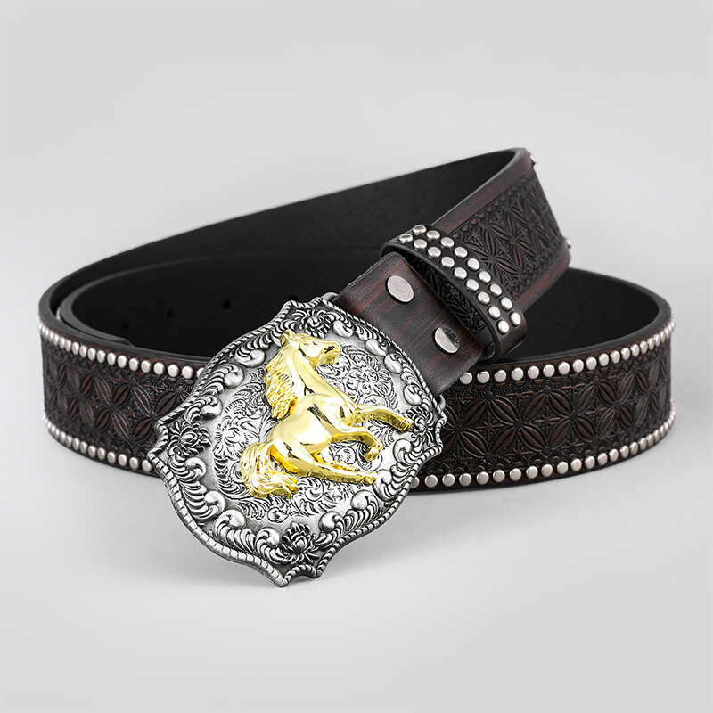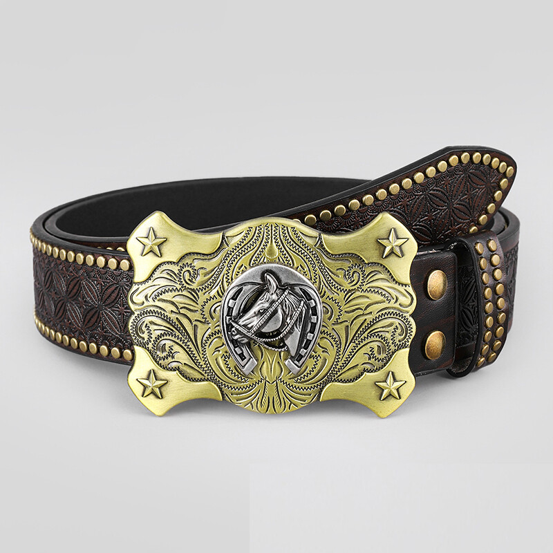Western Cowboy Belt for Men Women PU Leather Vintage Buckle Belt for Rodeo