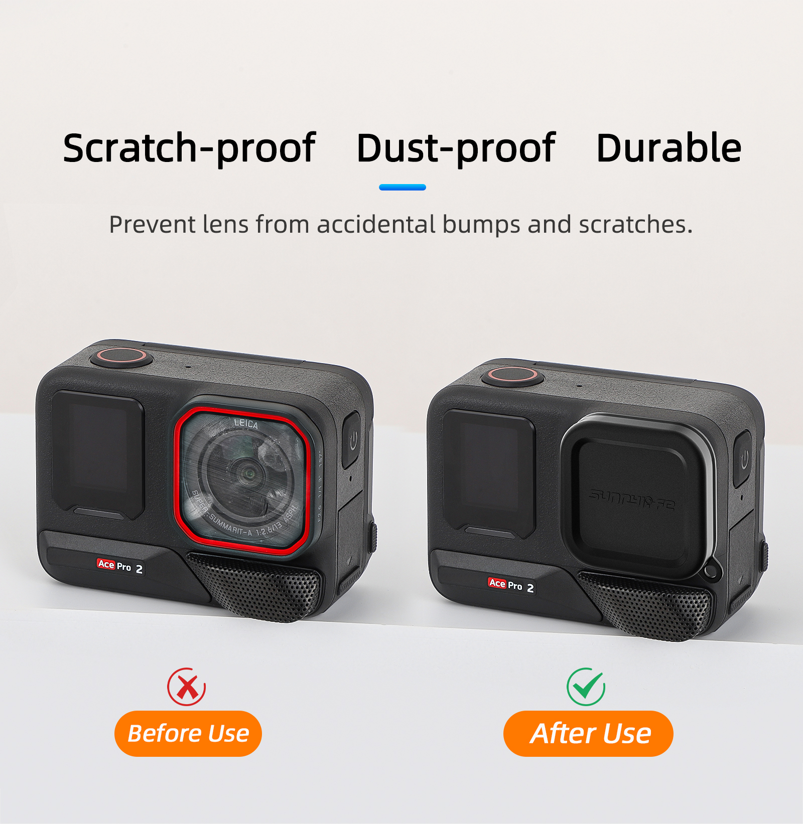 Anti-scratch, dustproof, durable, effectively protect the camera lens from accidental bumps and scratches.