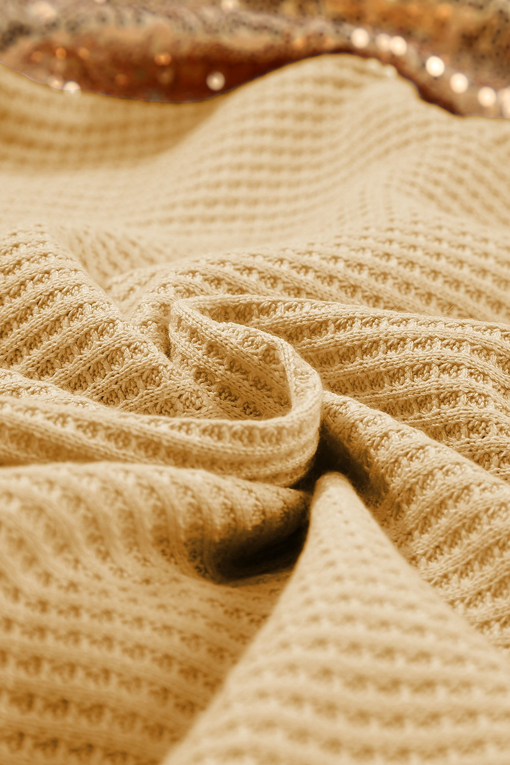 Add a touch of glamour to your casual style with the Apricot Sequins Waffle Knit Patchwork Long Sleeves Top. This unique top features eye-catching sequin patchwork on the sleeves, giving a sparkly contrast to the cozy, textured waffle knit. The soft apricot shade provides warmth and versatility, while the open back design adds an unexpected twist of sophistication. Made from durable polyester, this top is lightweight and comfortable, perfect for those days when you want to shine a little brighter.