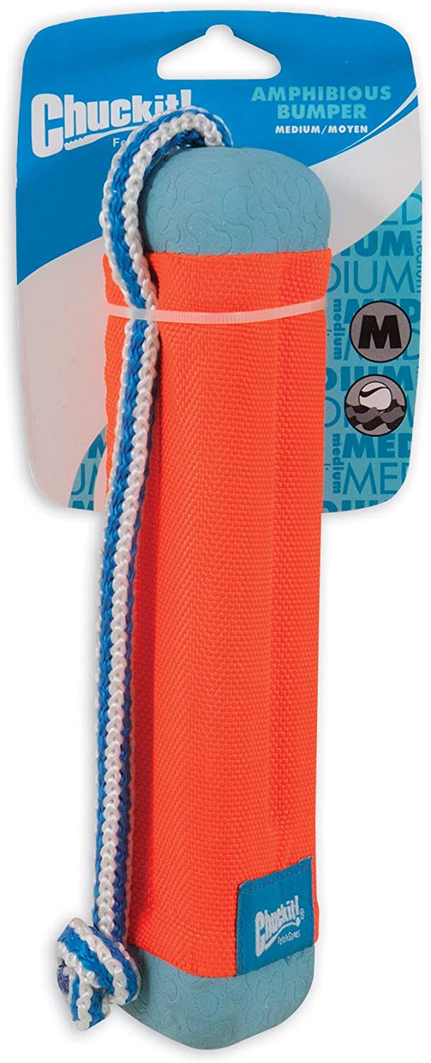 The Chuckit! Amphibious is a dog toy that provides lots of outdoor fun! This toy makes for a great game of fetch. It is made of a combination of durable memory foam and tooth-rugged nylon that allows for superior flight in the air and high floatation in the water, and with bright colors they are also easy to spot!