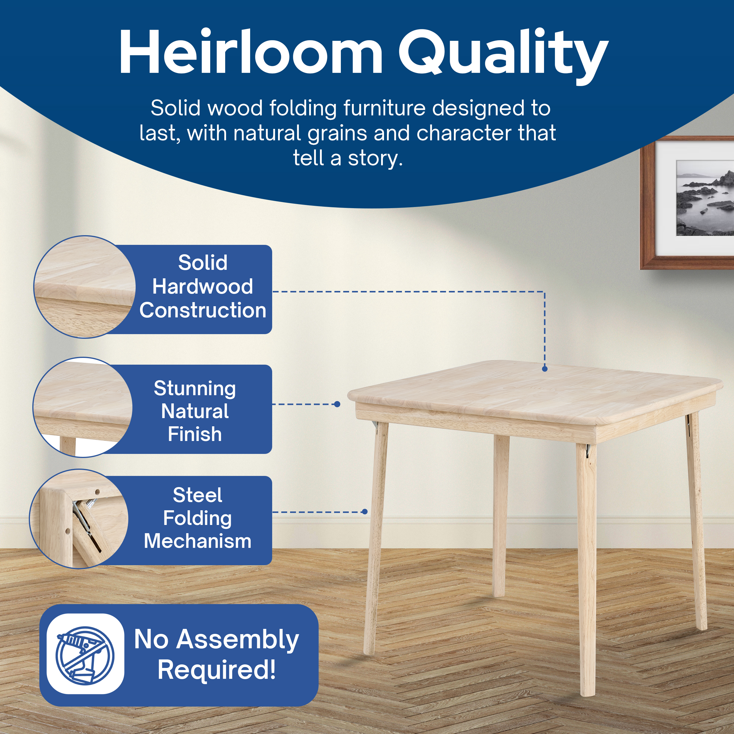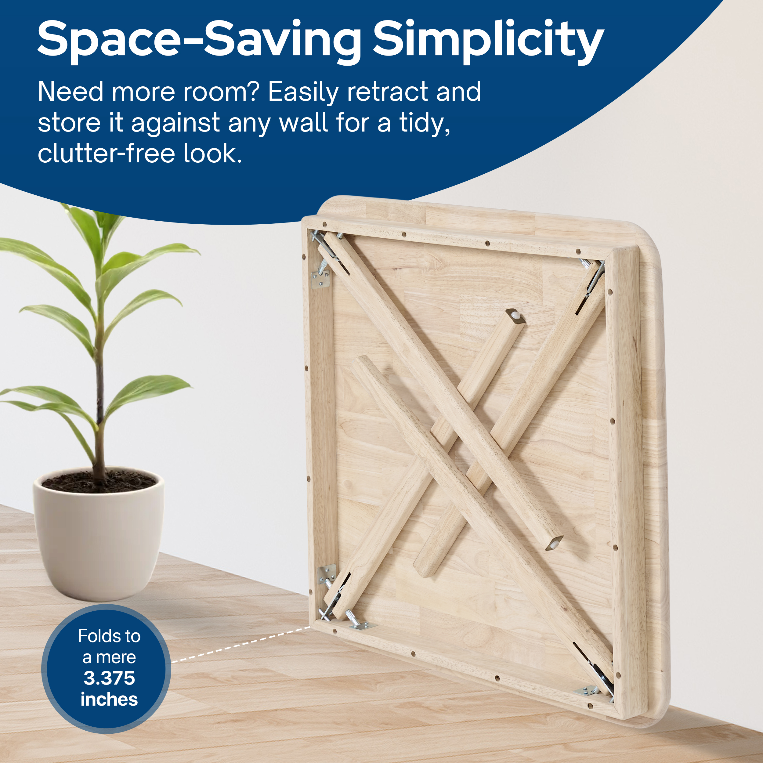 The folding mechanism operates smoothly without tools or complicated steps. Simply lift the tabletop and fold the legs underneath. Quick and easy to set up, this wooden table allows for both everyday use and special occasions.