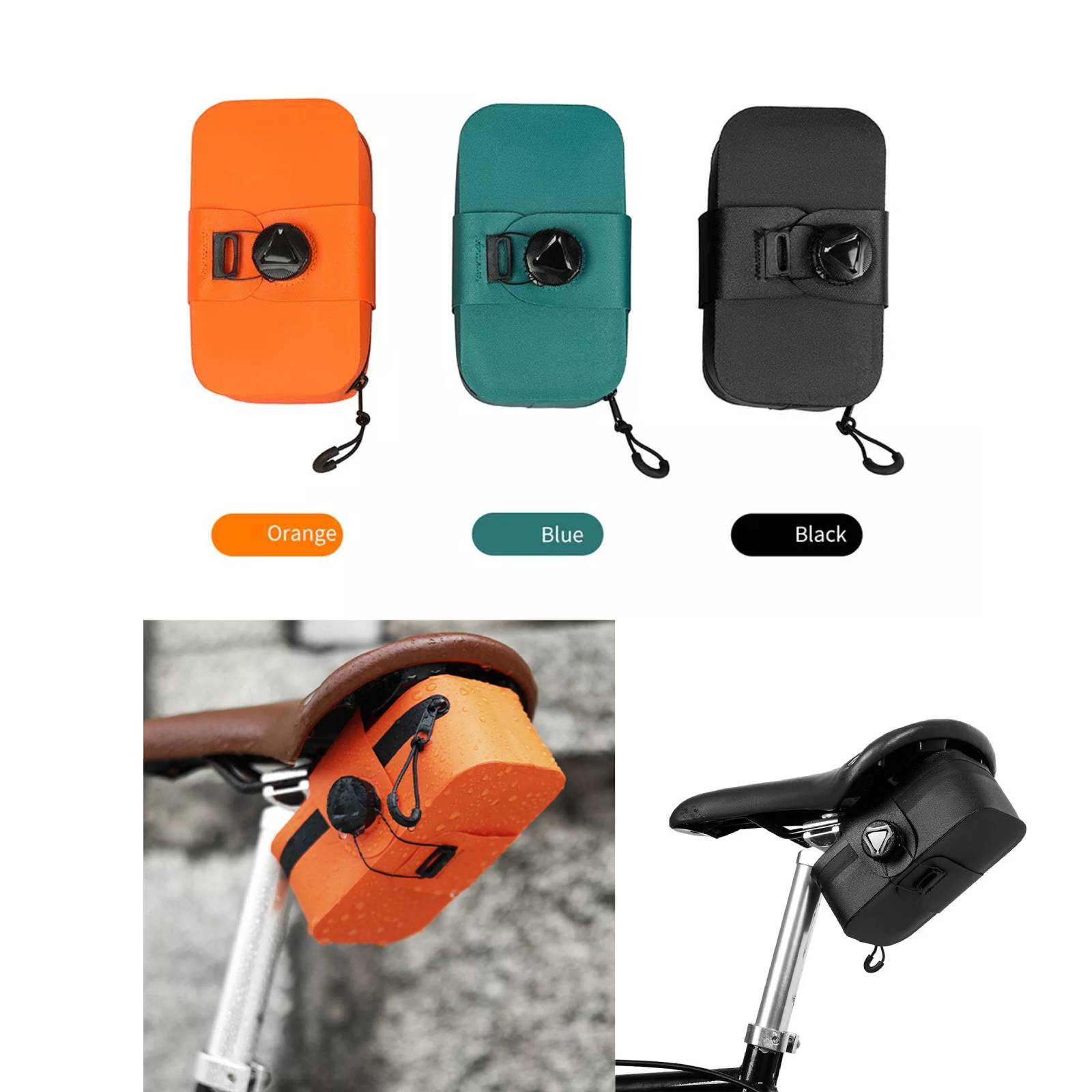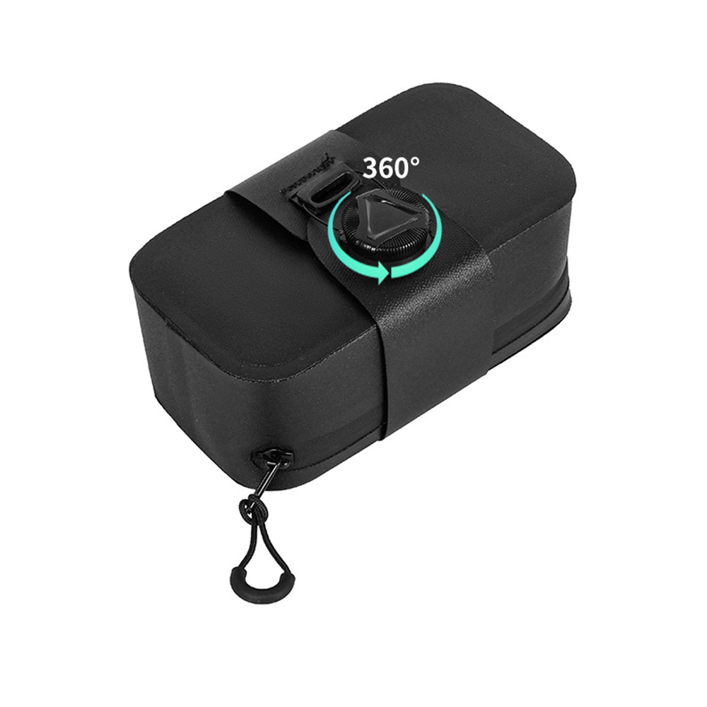 2. 360°swivel buckle fixing, ratchet mechanism Not easy to be loosened by vibration shock, keep the bag in position under the saddle and locked tight Until you need to use it.