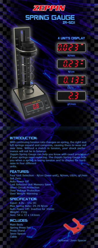 Optional shim set for measuring small spring such as 1/12 pan car spring, 1/10 F1 : https://www.ebay.com/itm/355287068474