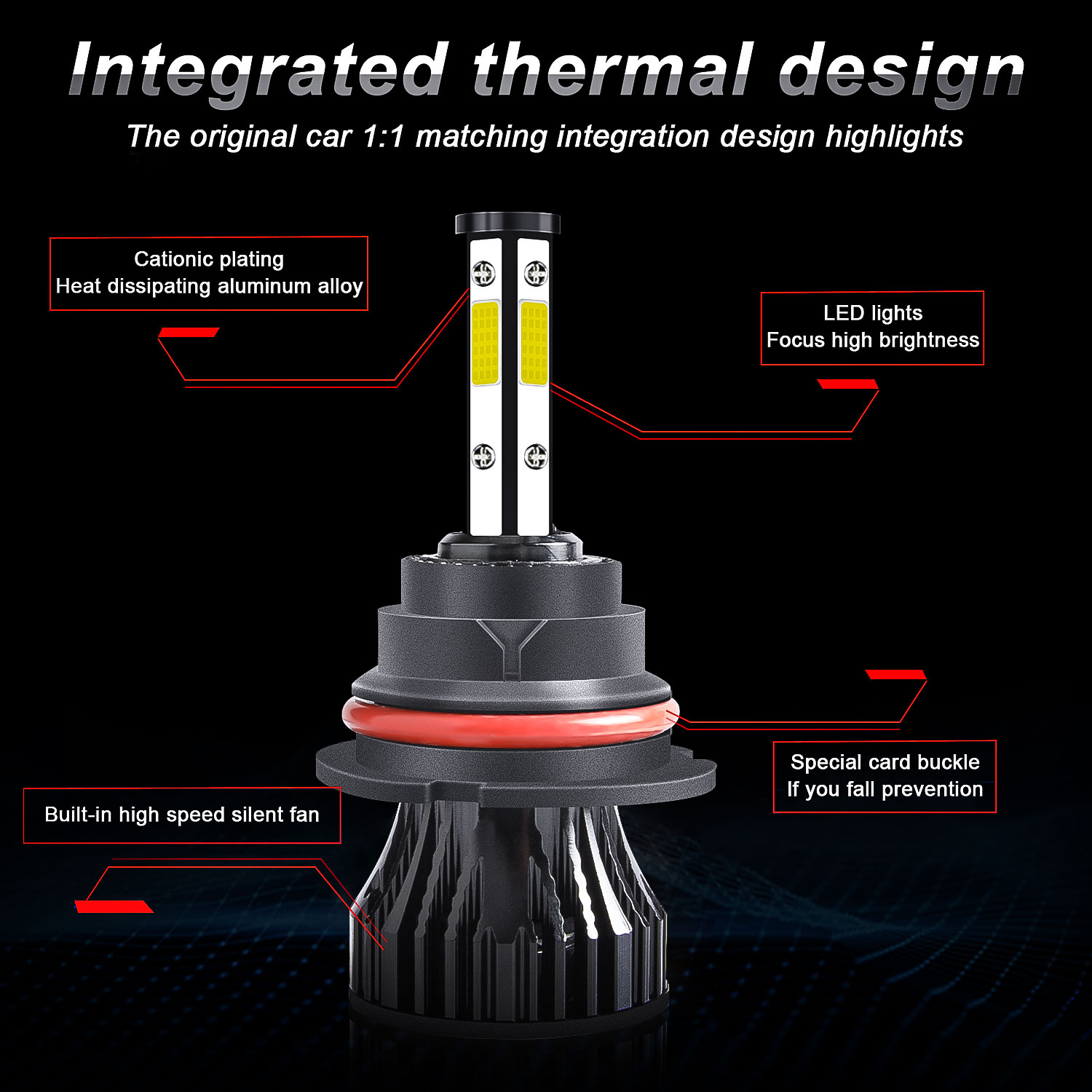 Cooling System -- Premium aluminum body, carved heat sink, and 12,000 RPM silent turbofan. Efficient cooling system facilitates the dissipation of heat, prolonging the life of the 9007 880 bulbs to over 50,000 hours. Say goodbye to frequent bulb replacement.