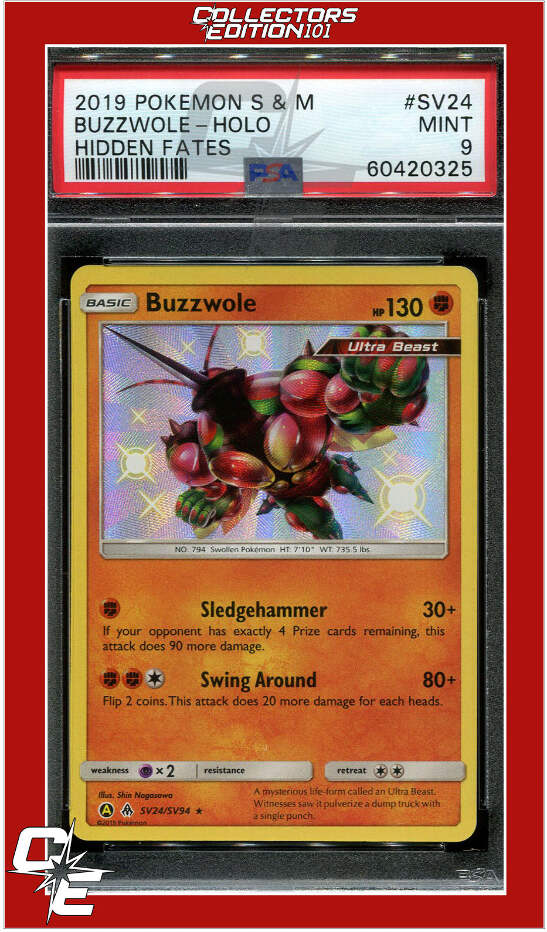 2019 Pokemon Sun & Moon Hidden Fates SV24 Buzzwole-Holo MINT 9 - POPULATION 360 as of 8-15-2022