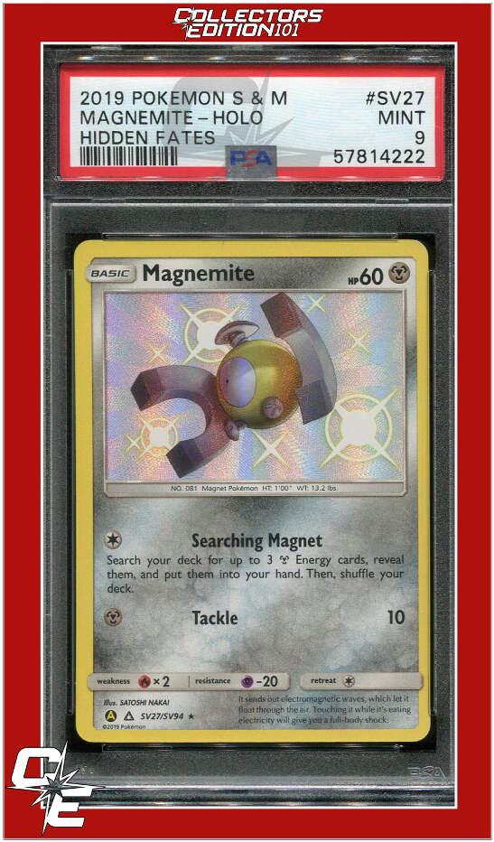 2019 Pokemon Sun & Moon Hidden Fates SV27 Magnemite-Holo MINT 9 - POPULATION 652 as of 4-7-2023