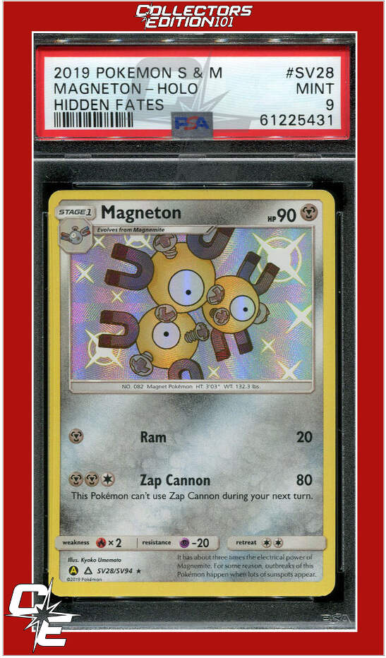 2019 Pokemon Sun & Moon Hidden Fates SV28 Magneton Holo MINT 9 - POPULATION 507 as of 10-16-2022