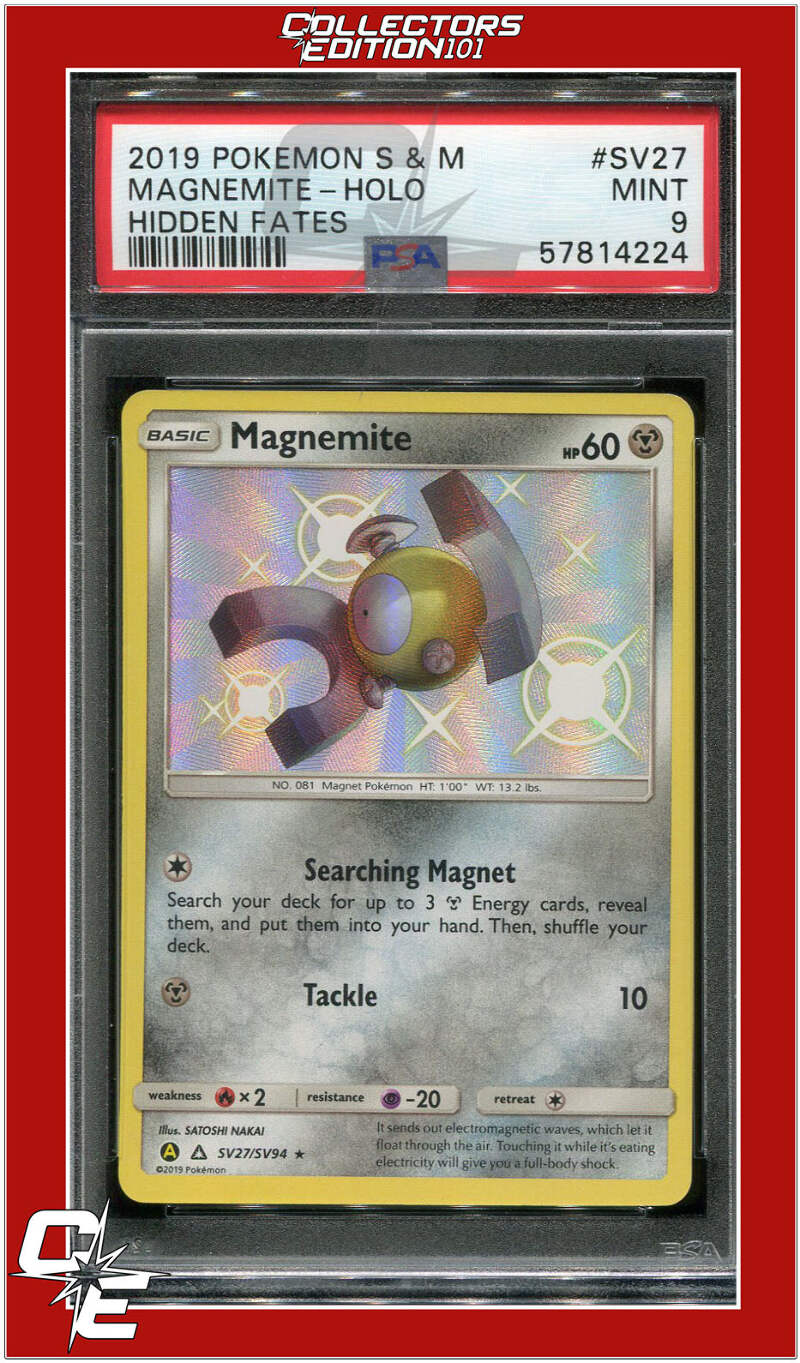 2019 Pokemon Sun & Moon Hidden Fates SV27 Magnemite-Holo MINT 9 - POPULATION 652 as of 4-7-2023