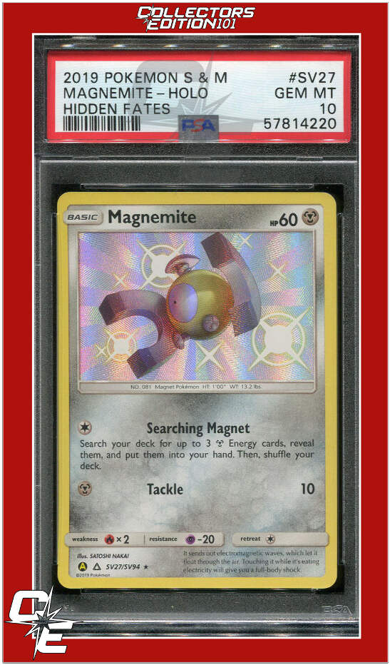 2019 Pokemon Sun & Moon Hidden Fates SV27 Magnemite-Holo GEM MINT 10 - POPULATION 1243 as of 4-7-2023