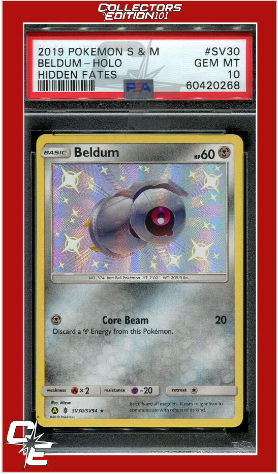 2019 Pokemon Sun & Moon Hidden Fates SV30 Beldum-Holo GEM MINT 10 - POPULATION 1050 as of 8-15-2022