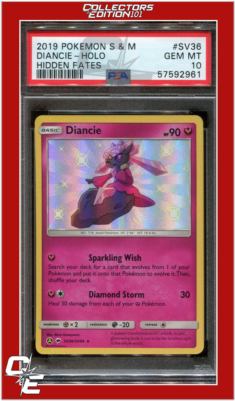 2019 Pokemon Sun & Moon Hidden Fates SV36 Diancie-Holo GEM MINT 10 - POPULATION 641 as of 7-31-2022
