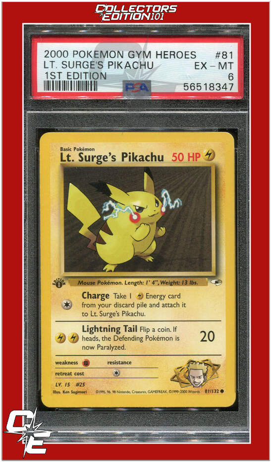 2000 Pokemon Gym Heroes 81 LT. Surge's Pikachu 1st Edition EXCELLENT-MINT 6 - POPULATION 14 as of 7-4-2022